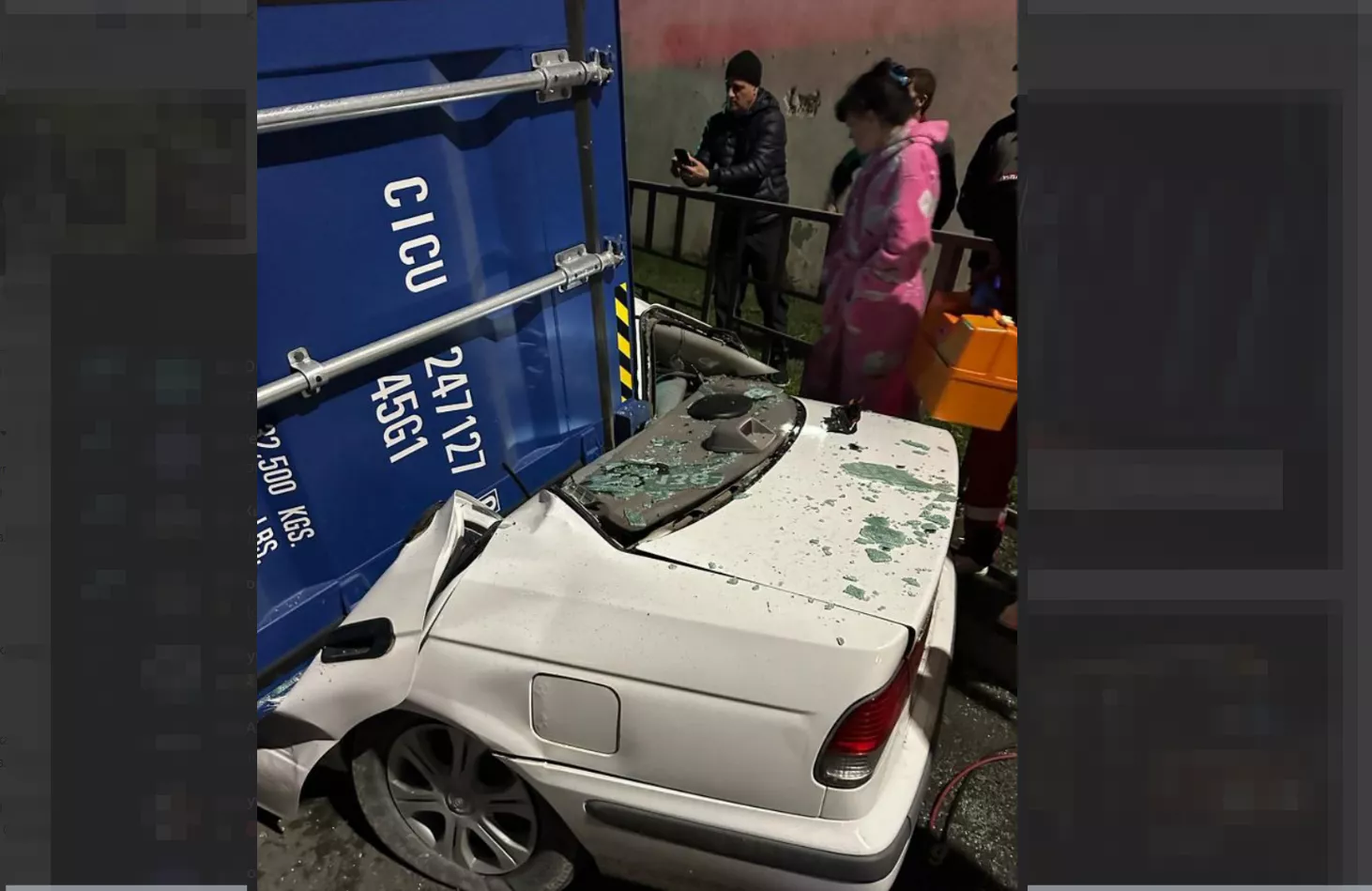 В Новороссийске на улице Робеспьера вечером 27 декабря груженый контейнер сорвало с полуприцепа. Он упал на стоящий рядом легковой автомобиль.