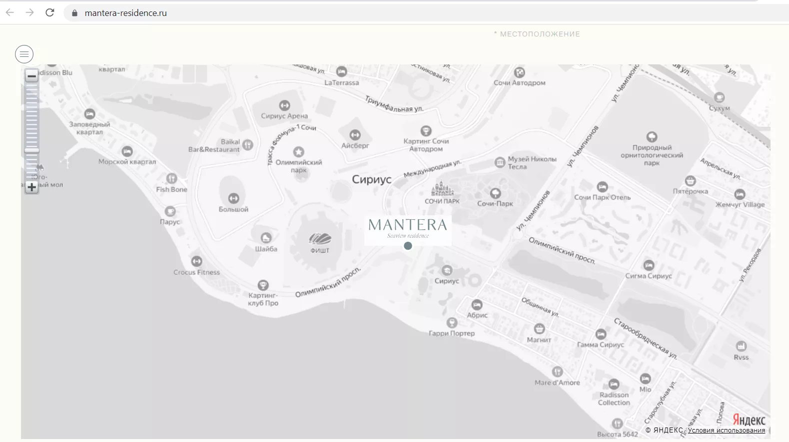 На сайте компании есть информация о строительстве элитного комплекса на первой береговой линии федеральной территории «Сириус» в Сочи. Вероятно, речь идет о стройке на Олимпийском проспекте.