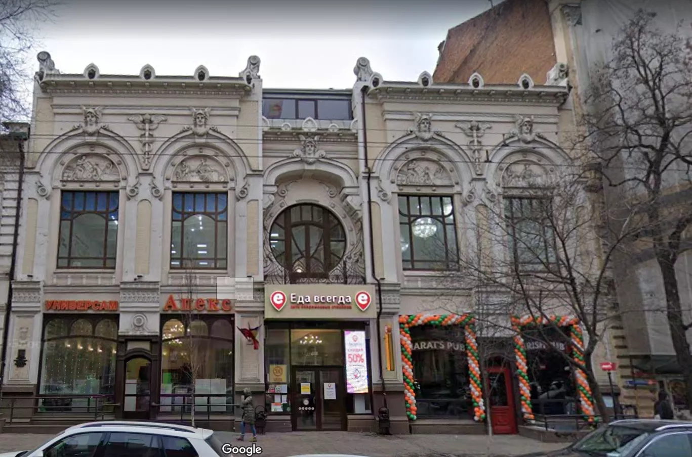 Вторая находка — «Торговый дом купца Яблокова», он располагается неподалеку, тоже на Большой Садовой, в центре города. Построили здание в 1898 году, в 1906 году в помещении заработал кинотеатр, один из первых в Ростове.