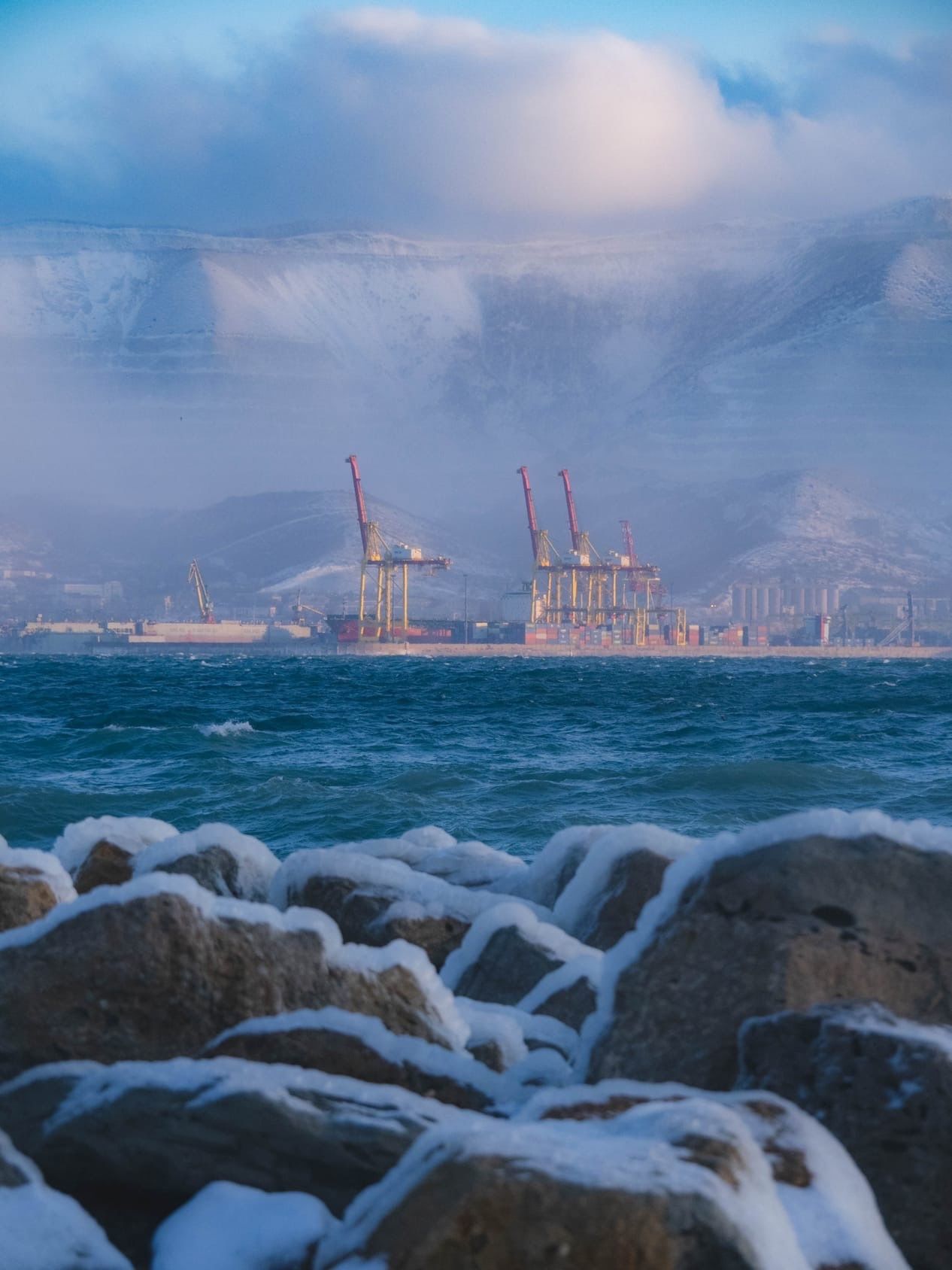 В Новороссийске ветер продолжает рисовать сказочные картины и создавать фигуры изо льда