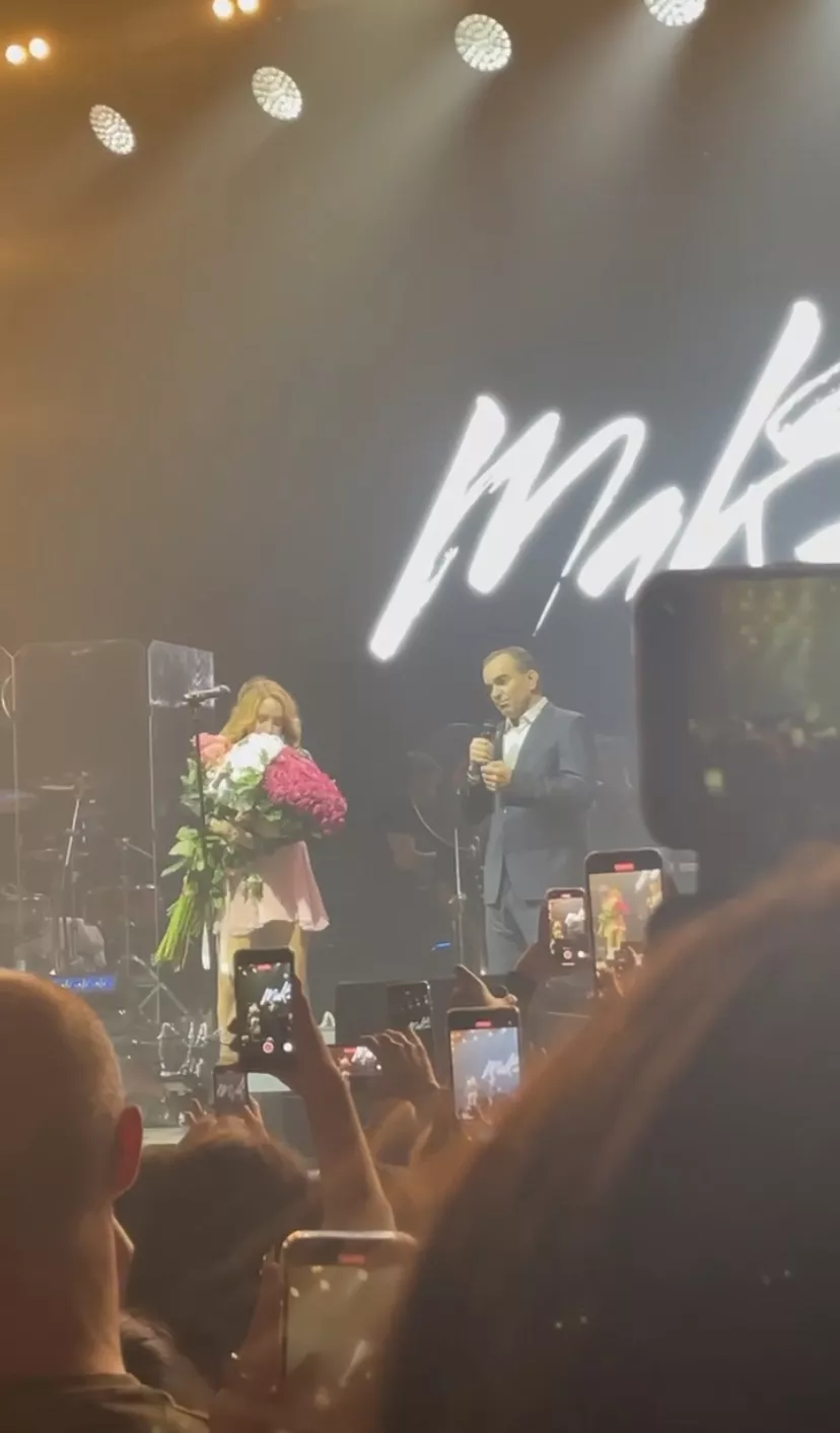 В Краснодаре 14 марта в дворце спорта «Олимпе» прошел концерт певицы Максим в рамках тура «Я буду жить». После выступления на сцену поднялся губернатор Кубани Вениамин Кондратьев, подарил певице цветы и произнес речь: