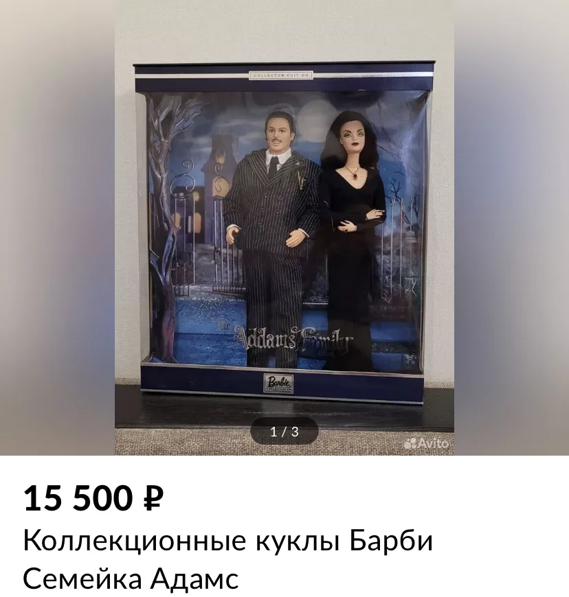 Барби-русалочку продают в Сочи за 7 тыс. рублей, а в Анапе за 12 тыс. рублей можно купить Барби с щелкунчиком Кларой. За 15 тыс. рублей в Краснодаре есть Барби из серии «Семейка Аддамс».