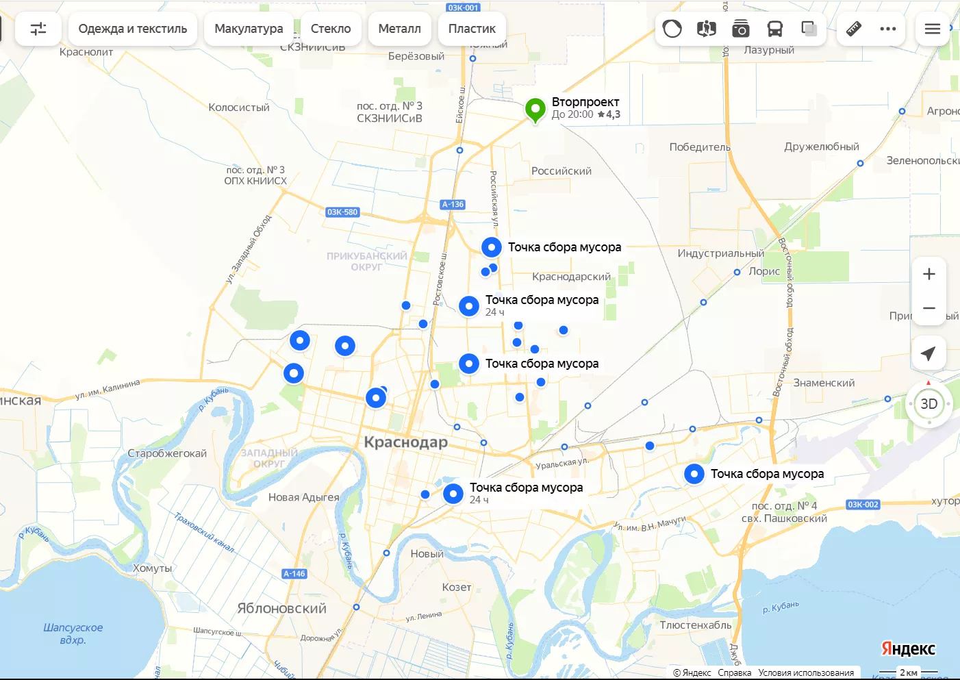 В Краснодаре «Яндекс Карты» добавили пункты сбора вторсырья. Все они проверены Recyclemap — проектом Greenpeace в России, сообщает «МЦУ Краснодар». Более 24 тыс. точек сбора появилось в 54 городах России.