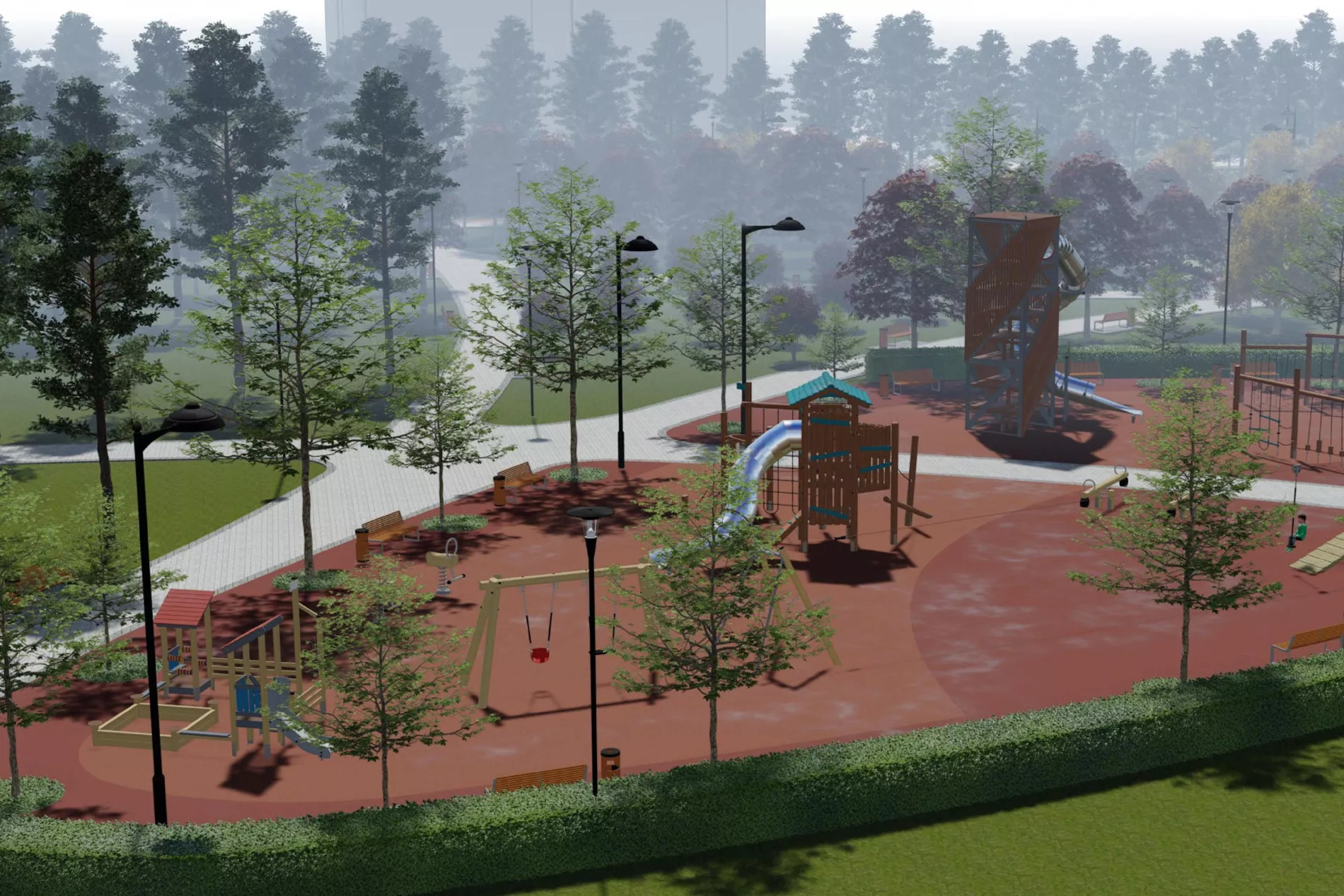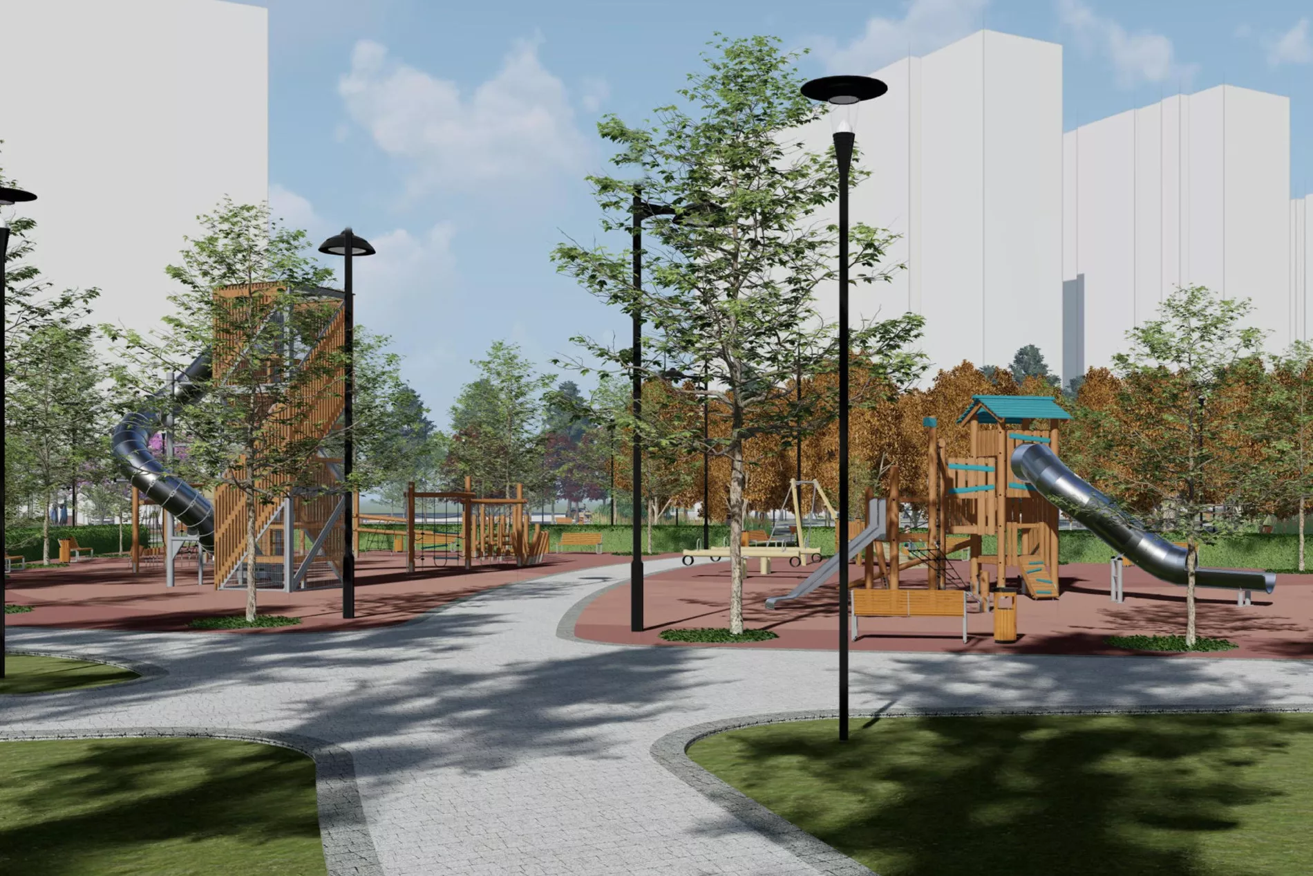 На участке вырубят сухие и аварийные деревья, высадят новые кустарники и многолетние растения, уложат рулонный газон, а также сделают тротуары. В сквере появятся детские и спортивные площадки, локация для мероприятий и парковка на 80 мест.