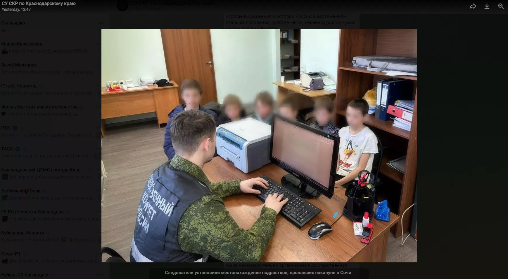 Как сообщает телеграм-канал «ЧП Сочи» со ссылкой на слова родителей, «мальчики гуляли вместе в Адлерском районе и не вернулись домой вечером 31 марта». В течение первых суток взрослые искали своих детей сами, после чего решили обратиться за помощью к полиции.