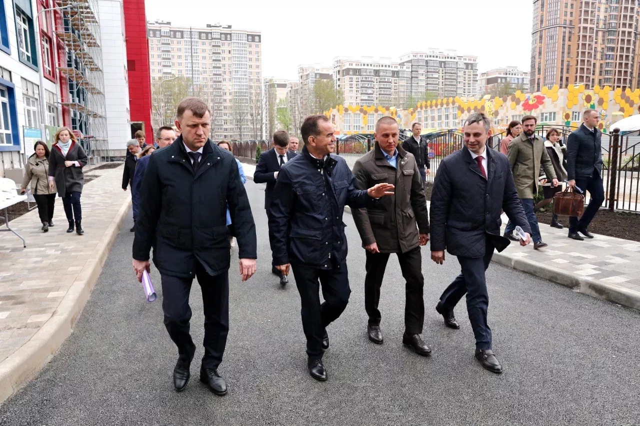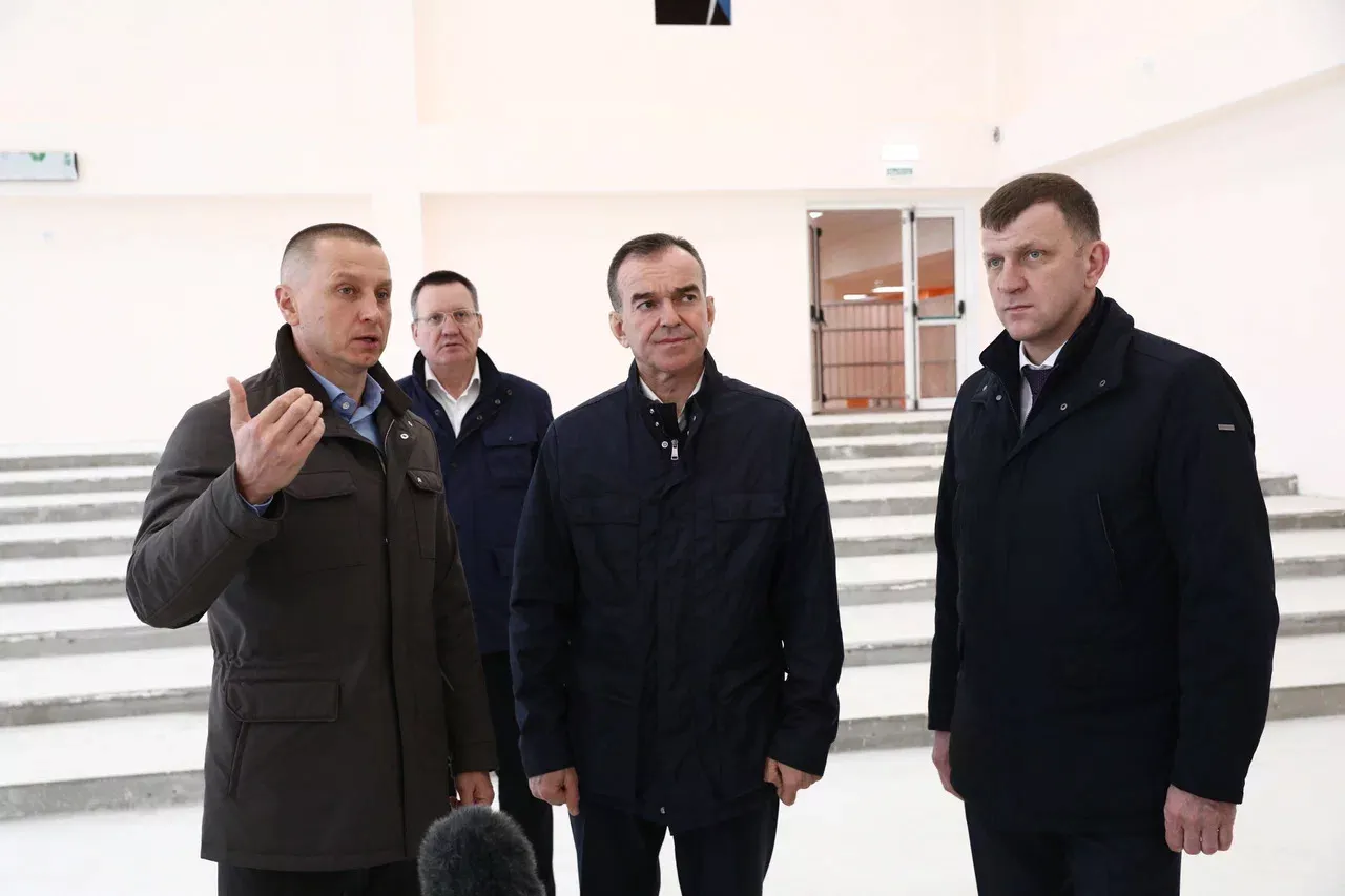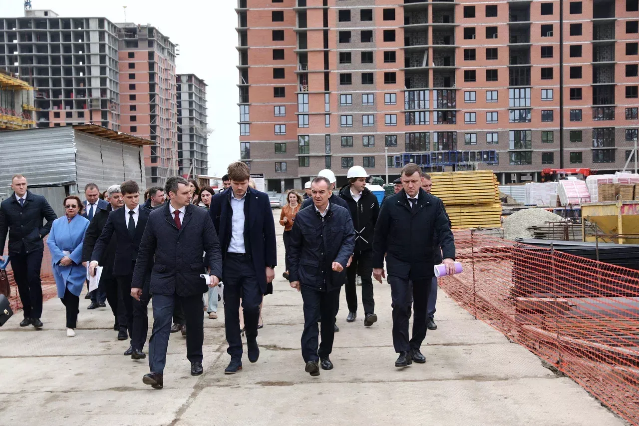 В семейном квартале «Достояние» от ГК «ЮгСтройИнвест» готовится к открытию новая школа на 1550 учебных мест. Ее посетили губернатор Краснодарского края Вениамин Кондратьев и мэр города Евгений Наумов вместе с заместителем гендиректора группы компаний Андреем Анашкиным.