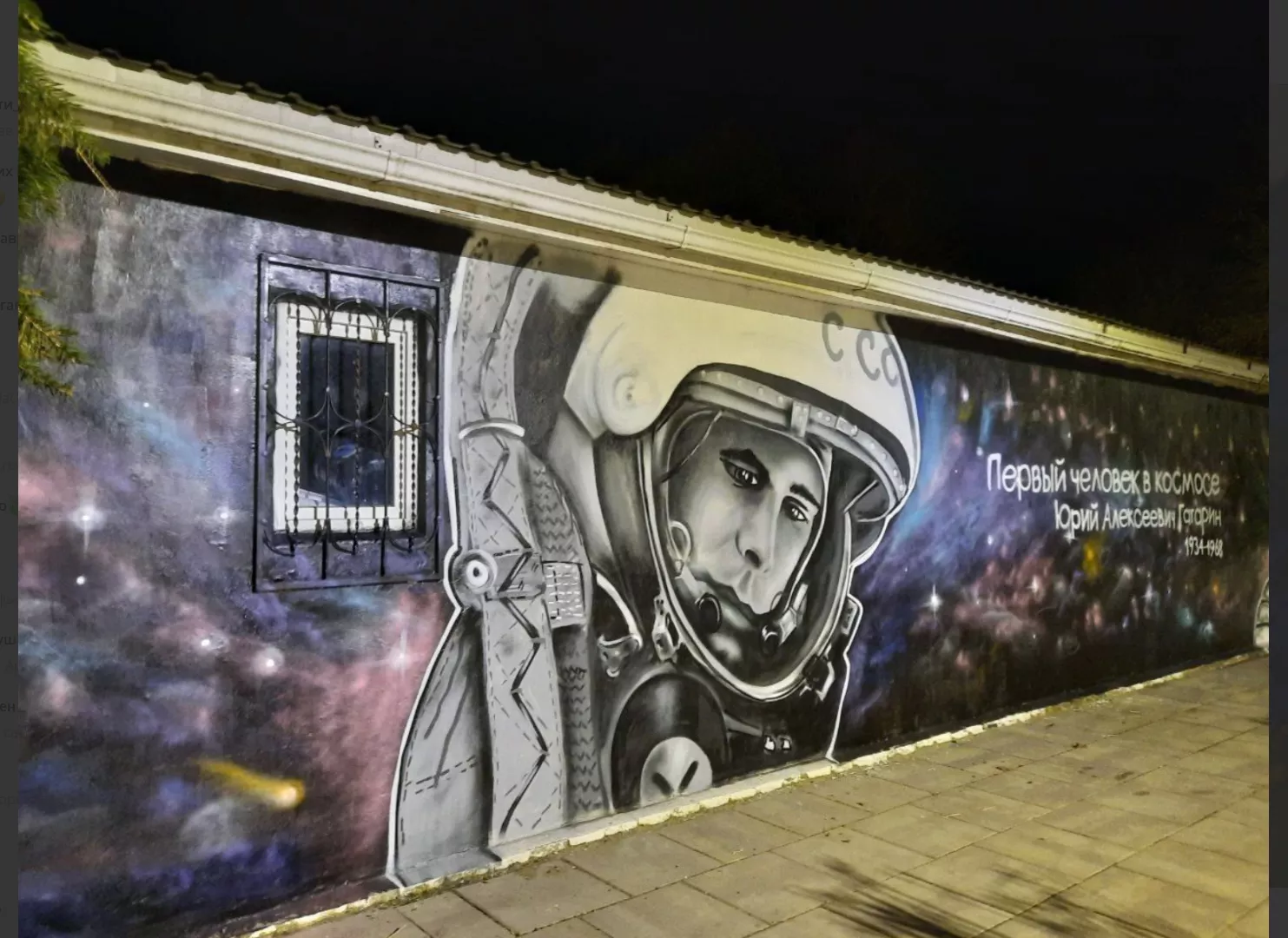 12 апреля в сети появились фото и видео с граффити летчиков-космонавтов СССР в парке Усть-Лабинска. На мурале изображены Юрий Гагарин и Виктор Горбатко.