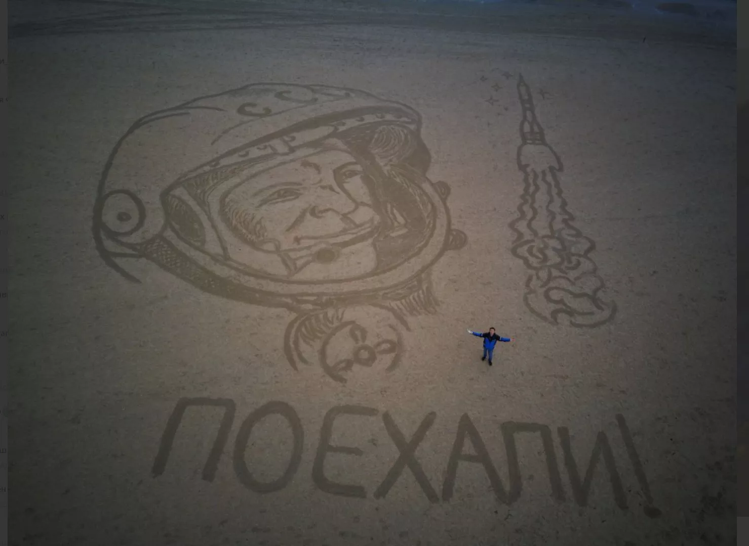 12 апреля в день космонавтики в сети появились фото и видео большого изображения Юрия Гагарина. Его нарисовали на одном из пляжей Анапы. Рядом с первым космонавтом нарисована ракета и фраза «Поехали!».