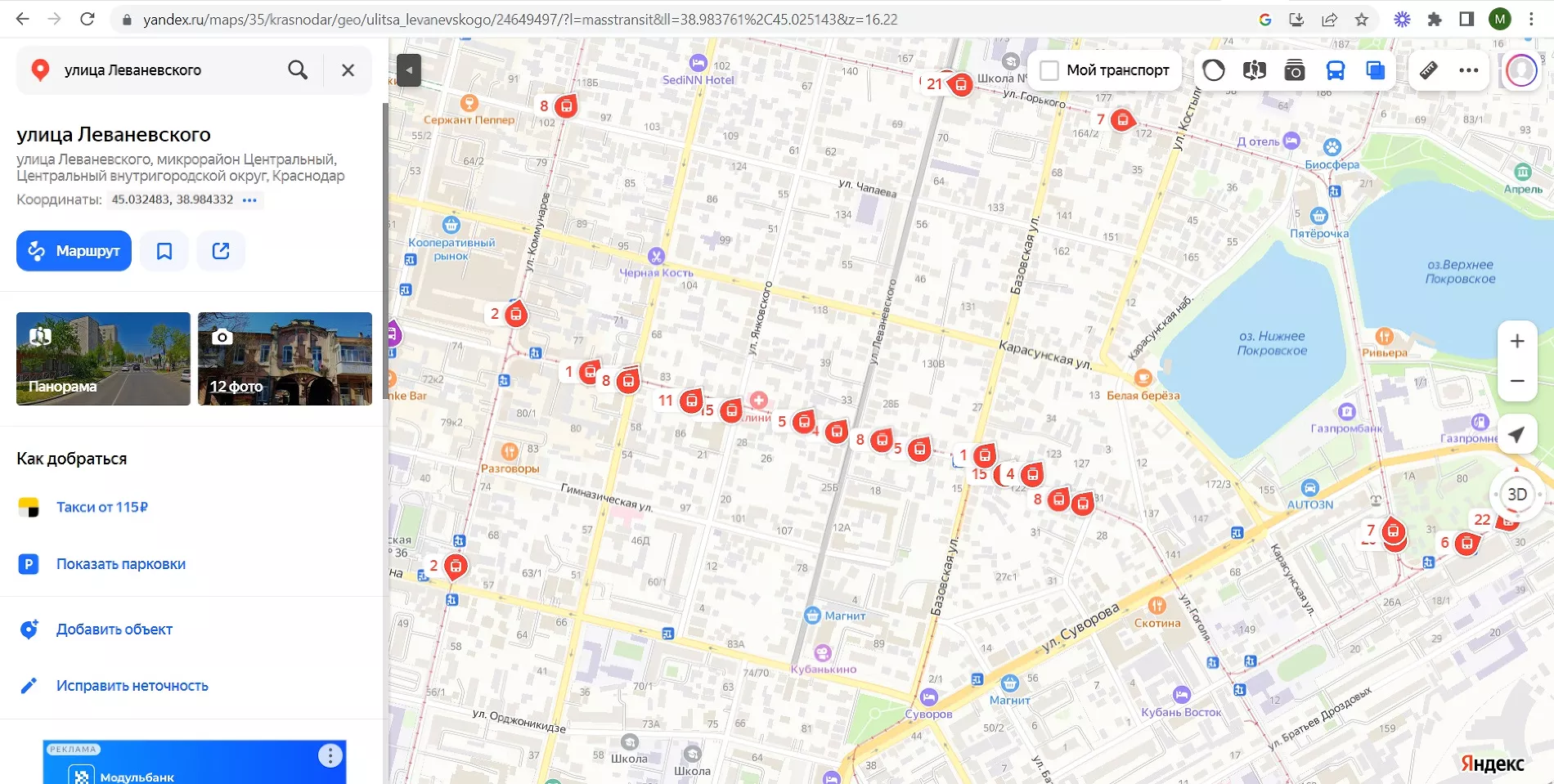 На данный момент стоят трамвайные маршруты под номерами: 1, 4, 5, 8, 11, 15.