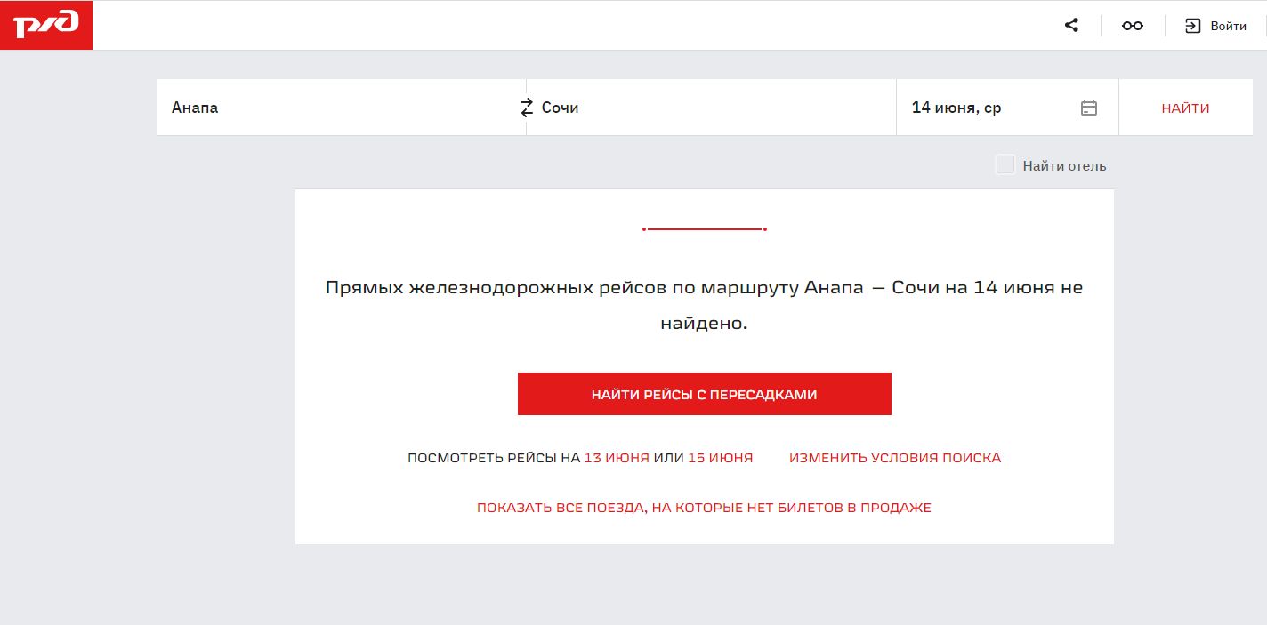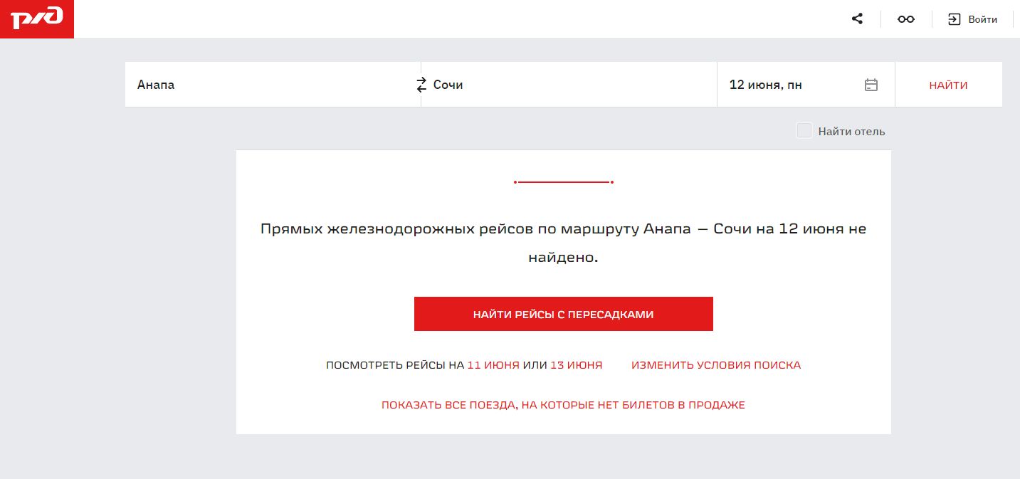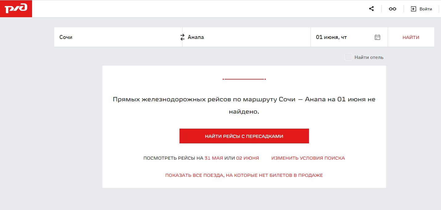 Кроме того, есть проблемы с приобретением билетов в обратном направлении — из Сочи в Анапу. Прямых железнодорожных рейсов по данному маршруту нет до конца июня.