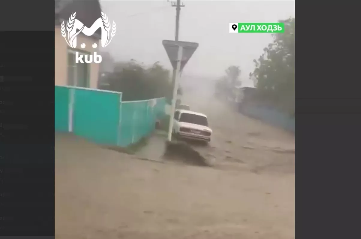 В соцсетях 26 мая появились фото и видео наводнения в ауле Ходзь в Адыгее. На кадрах видно, что затоплены дороги и дворы частных домов.