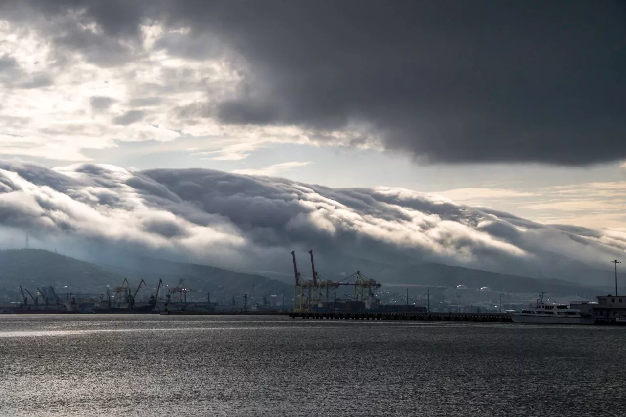 Новороссийские фотографы запечатлели редкое природное явление — бору или облачную «бороду», как называют его местные жители. Бора возникает, когда поток холодного воздуха подходит к горному хребту с северо-востока. Под воздействием гравитации воздух стекает по склону, приобретая большую скорость.