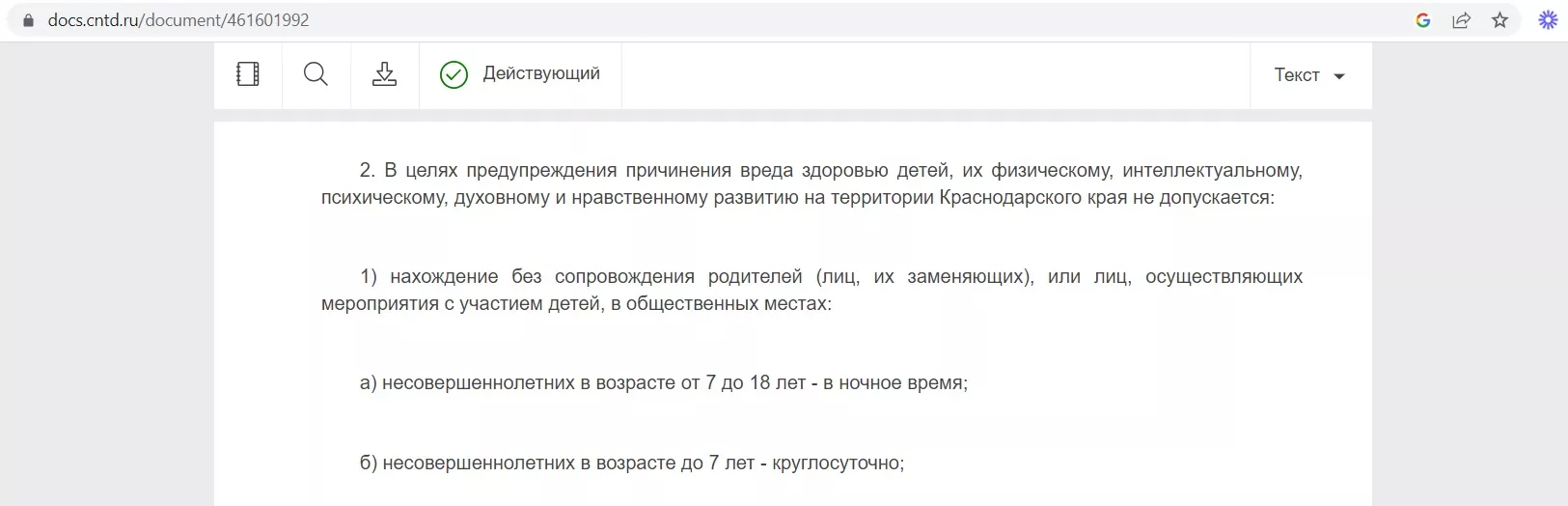 Отметим, согласно закону Краснодарского края №1539-КЗ, дети до семи лет должны находиться в общественных местах под присмотром круглосуточно. Дети от 7 до 18 лет — в ночное время суток.