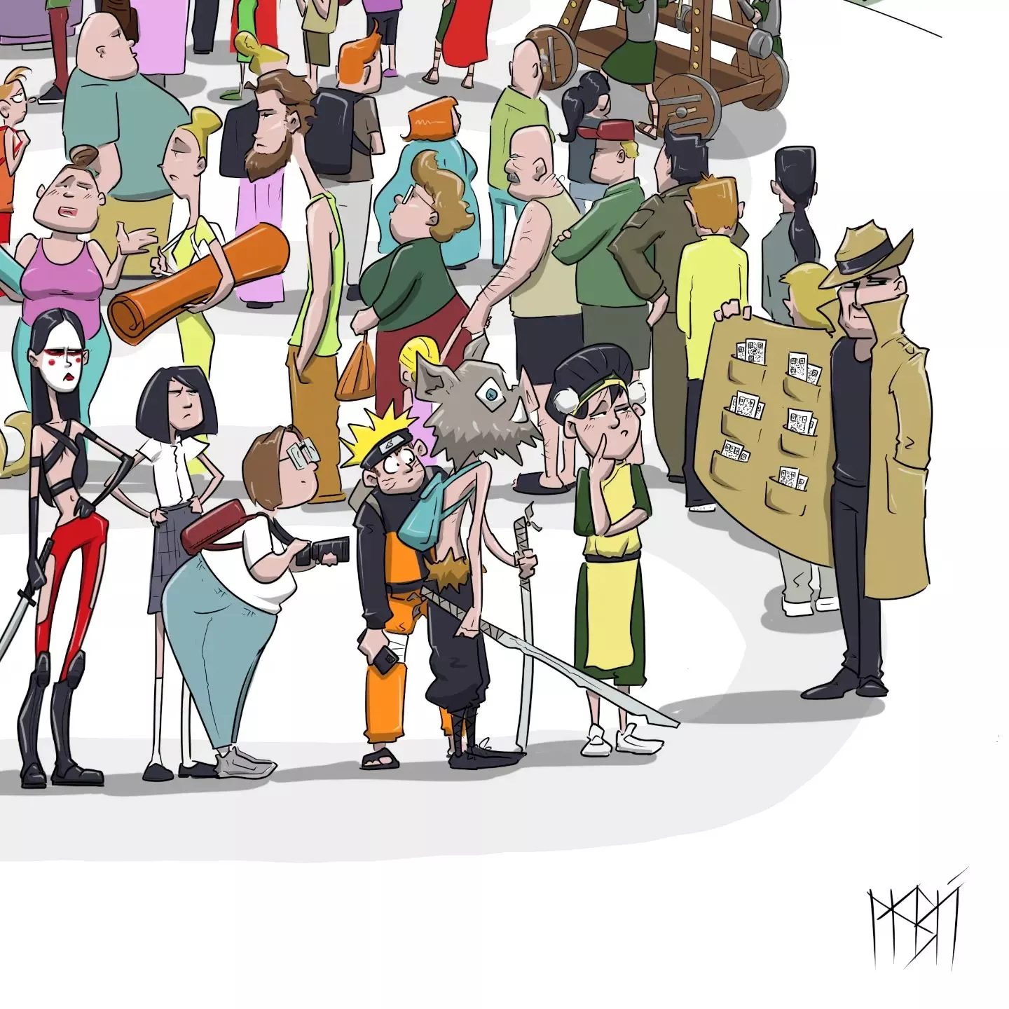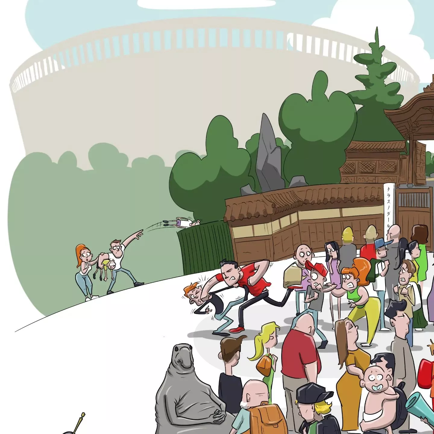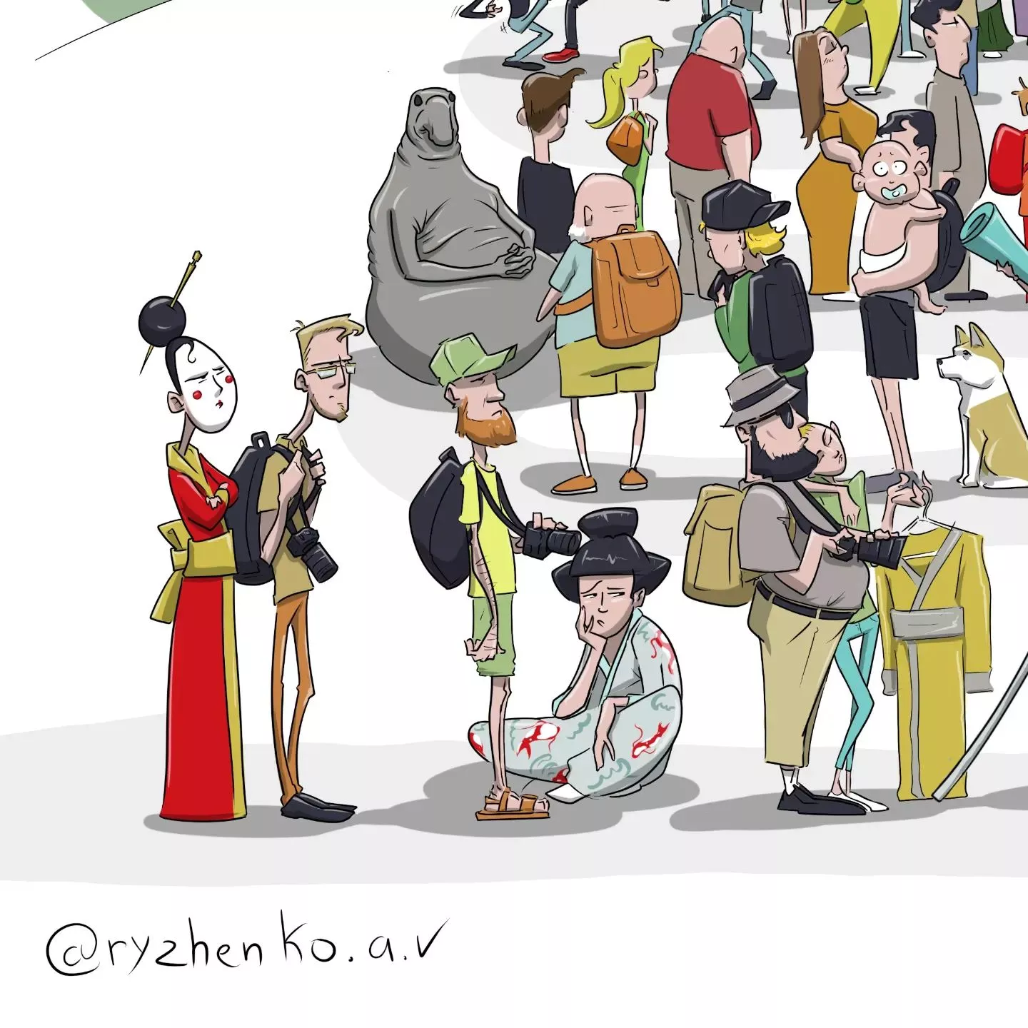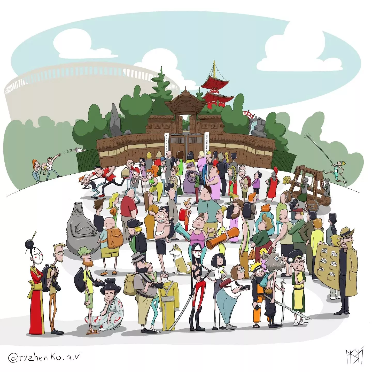 Художник Алексей Рыженко создал иллюстрацию очереди в Японский сад