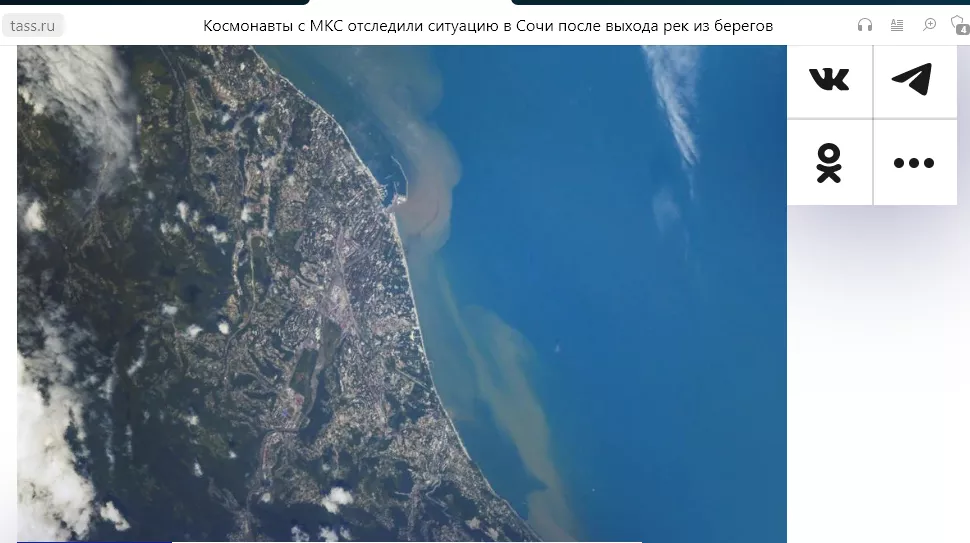 Космонавты сняли с Международной космической станции берег Сочи, пострадавший после разлива рек Мзымта и Мацеста, сообщил ТАСС.