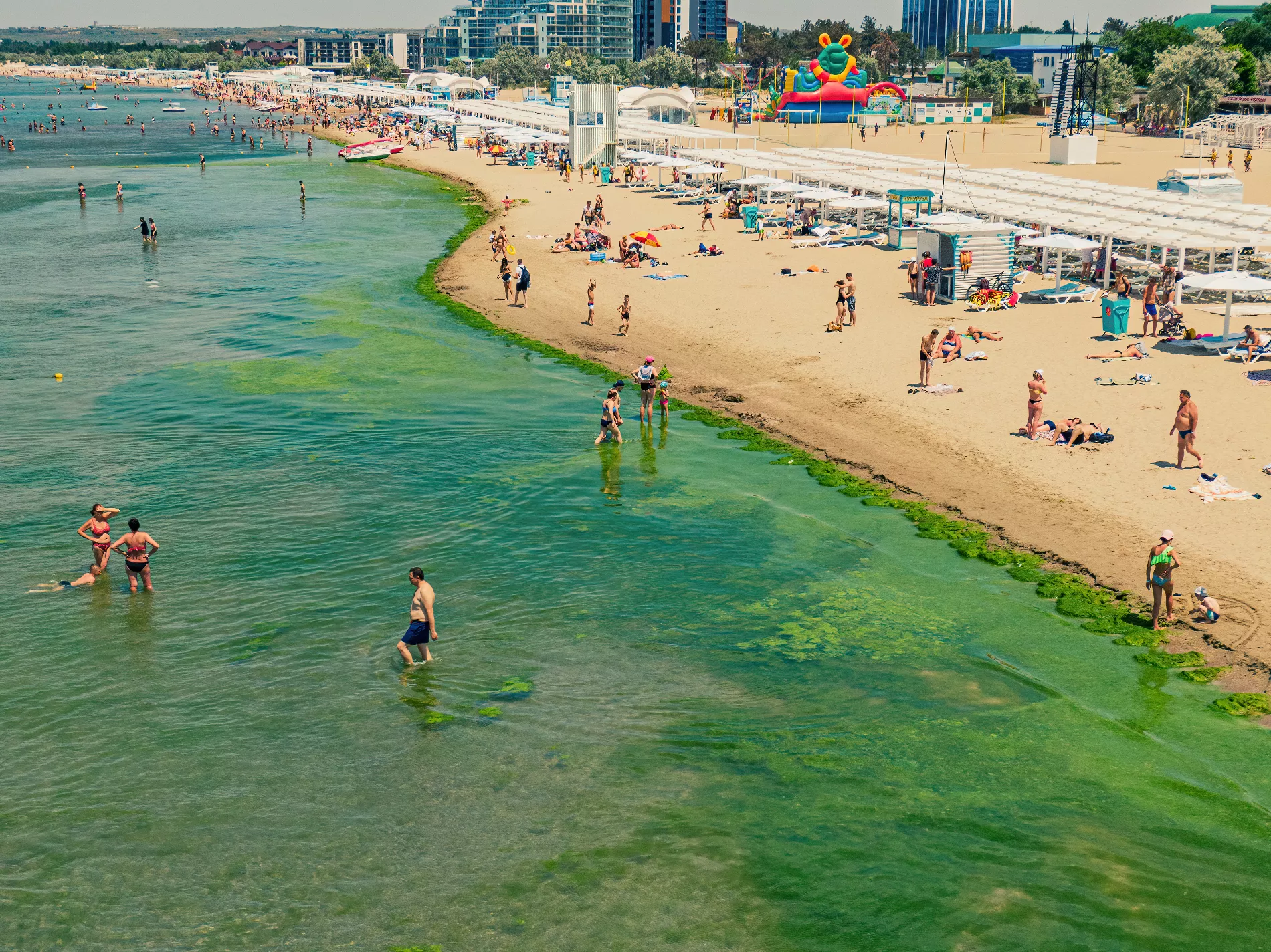 Каждое лето в Анапе море зацветает ядовито-зеленым оттенком. Прибрежную тину называют словом «камка». Первые ярко-зеленые очаги появляются на центральном пляже Анапы в конце мая, а в августе количество водорослей обычно достигает пика.