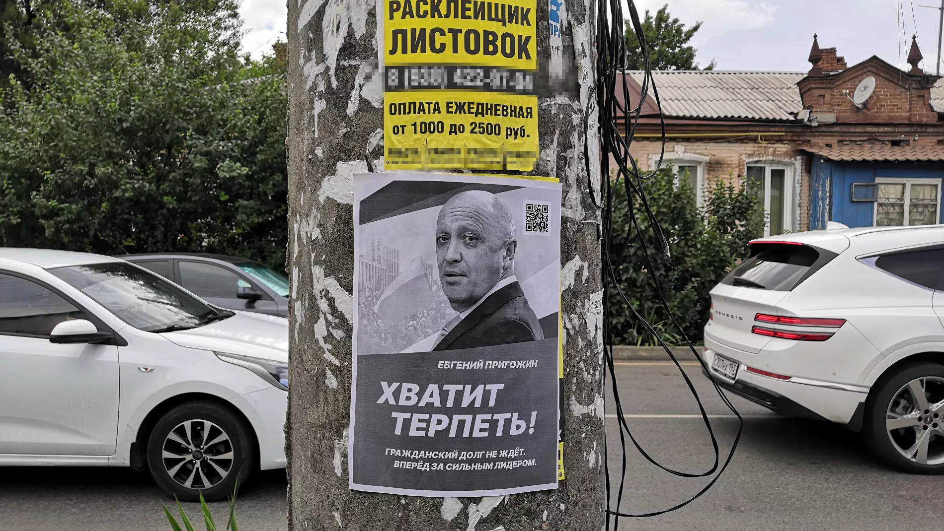 В Краснодаре расклеили листовки с Пригожиным. QR-код ведет на сайт с агитацией к 2024 году, а чат-бот набирает волонтеров