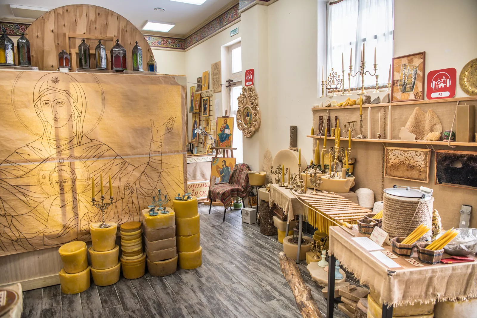 Также рядом находится свечной заводик. Здесь гостям расскажут, как свечи делали в Древней Руси. Для этого мастера использовали метод макания, опуская фитиль в расплавленный воск. На изготовление свечей уходило до 2,5 часов.