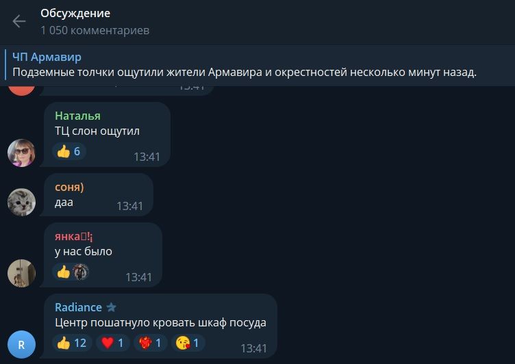 В пабликах Армавира 23 июня появилась информация о землетрясении. В комментариях жители города писали, что ощутили толчок.