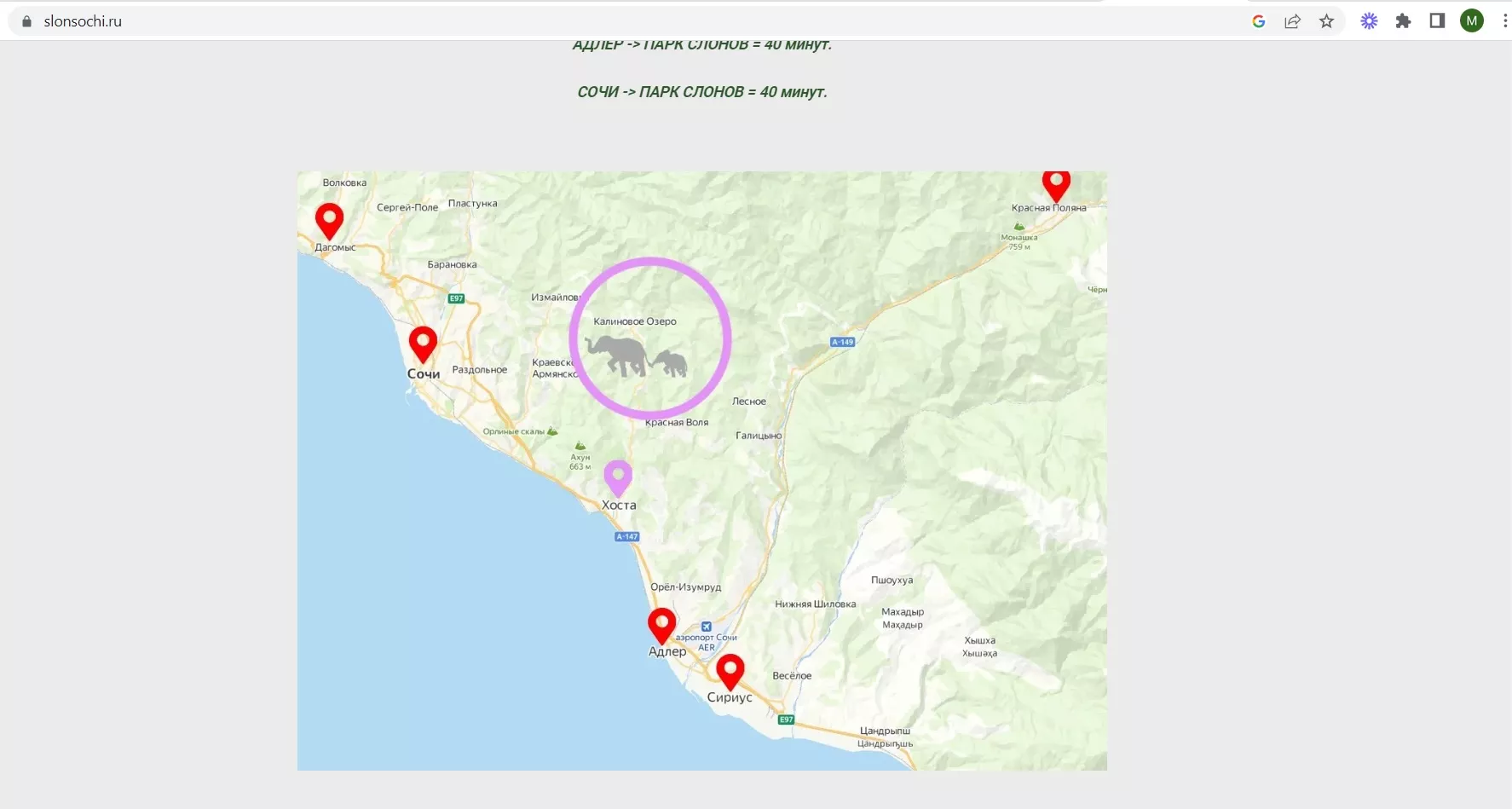 •  © скриншот страницы сайта https://slonsochi.ru/