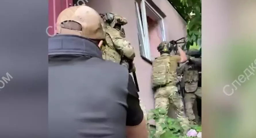 Судя по записи, в задержании участвовали минимум пять силовиков в камуфляже, бронежилетах и с автоматами. Подозреваемого задержали в одноэтажном доме, находящемся в частном секторе или за городом.
