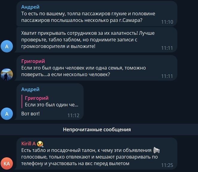 «Согласно поднятым логам из программы (на скрине) — все объявления давались корректно», — сказали в аэропорту.