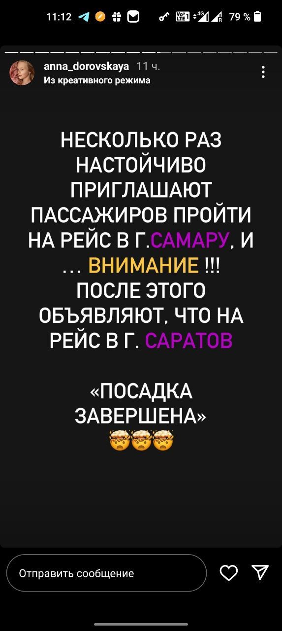 Девушка написала, что аэропорт объявил о 20-минутной задержке рейса в Саратов, а позже оказалось, что речь шла о рейсе в Самару. Таким образом, пассажиры пропустили посадку на самолет в Саратов.