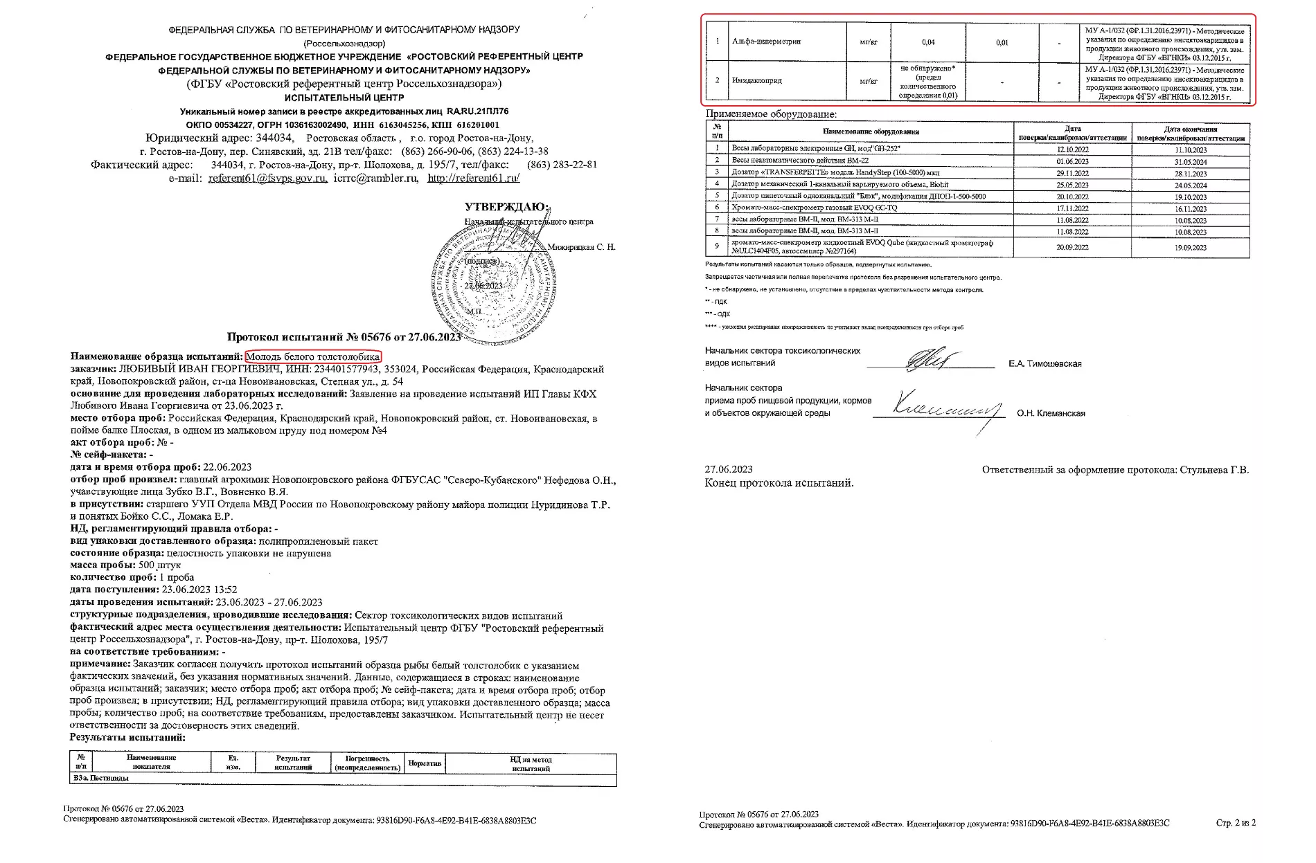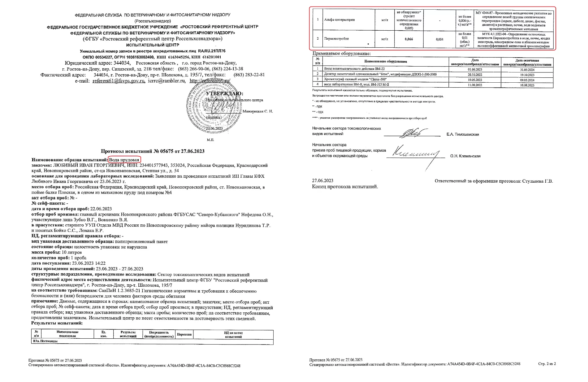 © Протокол испытаний Россельхознадзора