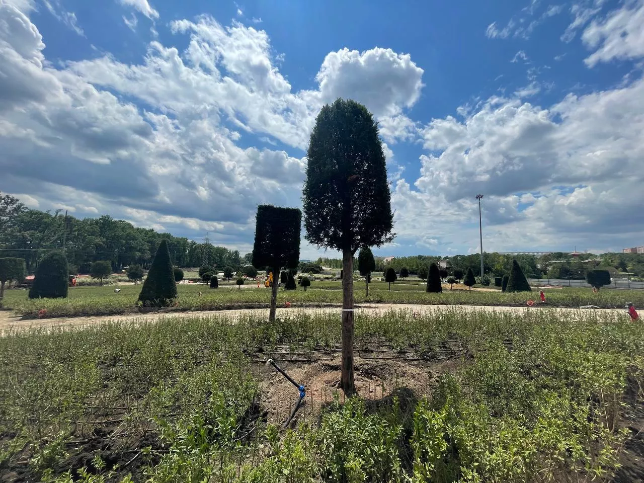 Ранее, 29 июня, сотрудники Garden's рассказали, что в местах стройготовности продолжили высаживать кусты, добавили лиственные деревья (дубы, платаны, тисы) и стриженные формы хвойных видов.