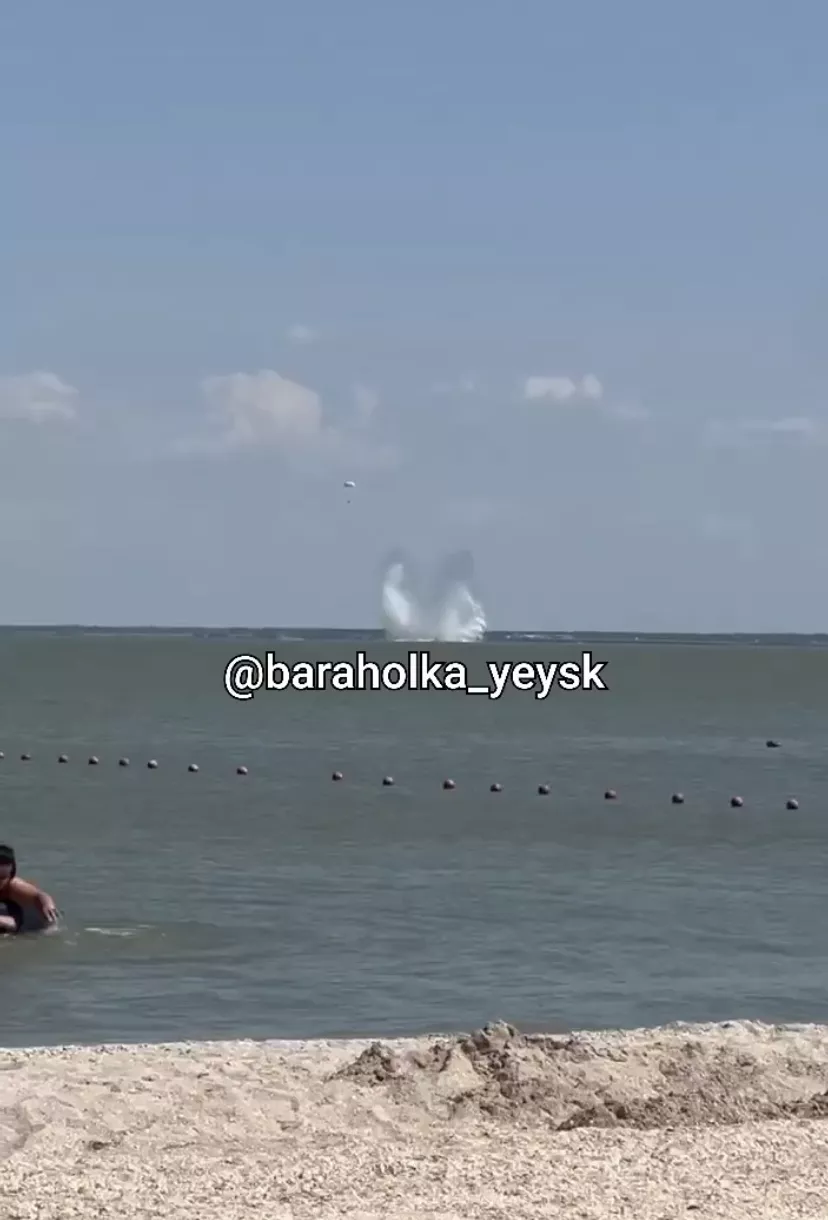 У берегов Ейска в Азовское море упал самолет Су-25. Туристы успели заснять крушение