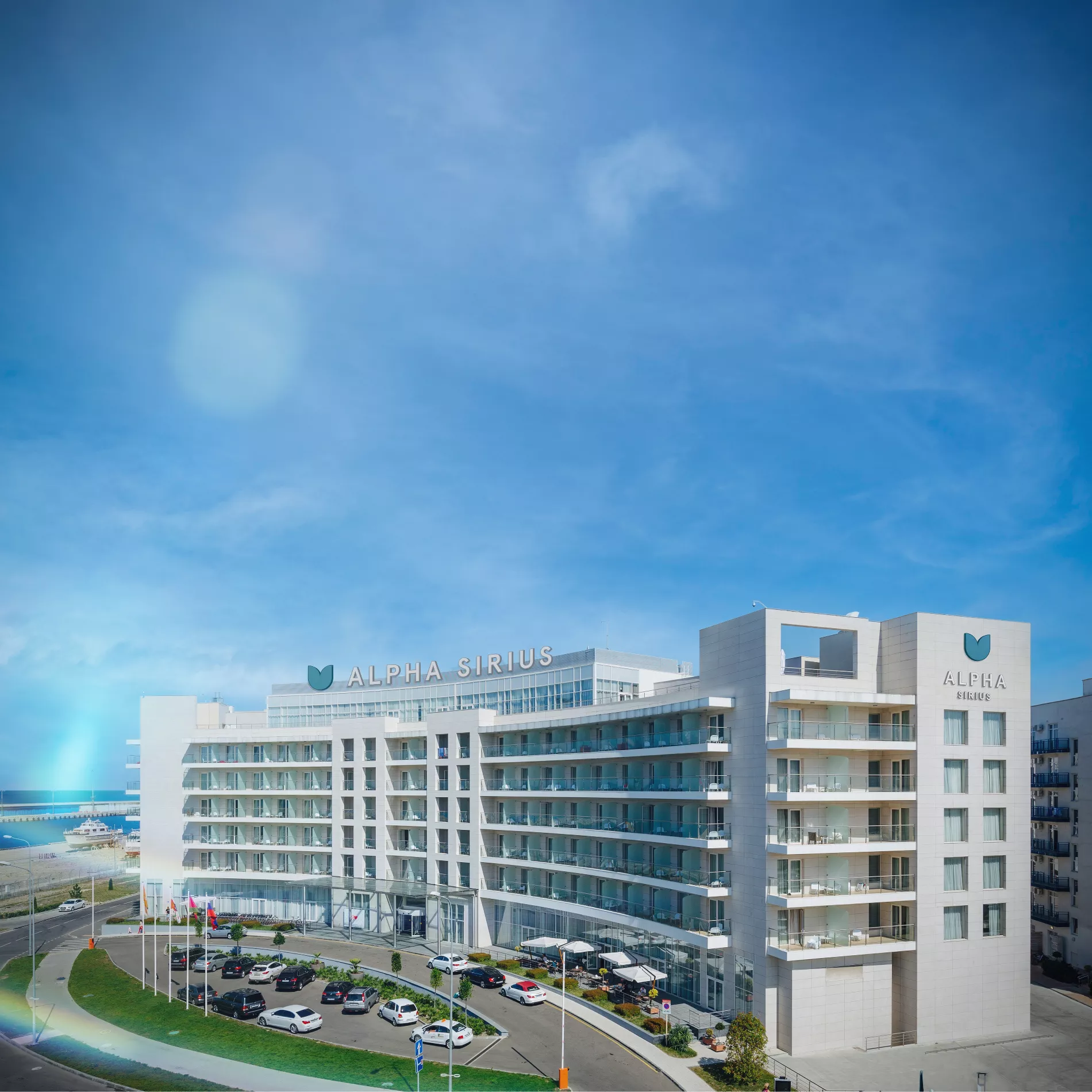 Четырехзвездочный отель «Альфа Сириус» включает в себя 196 номеров от категори «стандарт» до «люкса» с панорамным видом на море и горы. В комплексе есть открытый бассейн, фитнес-клуб и конференц-залы.