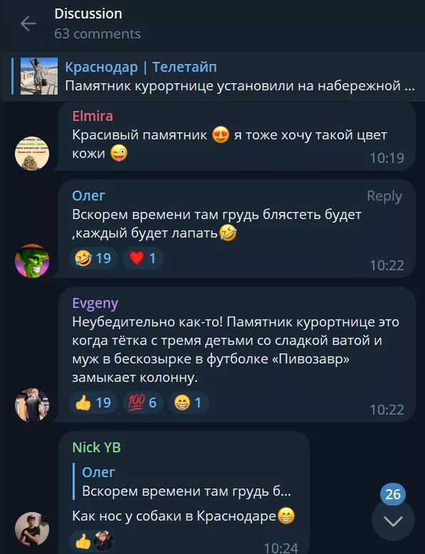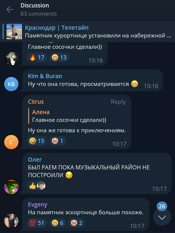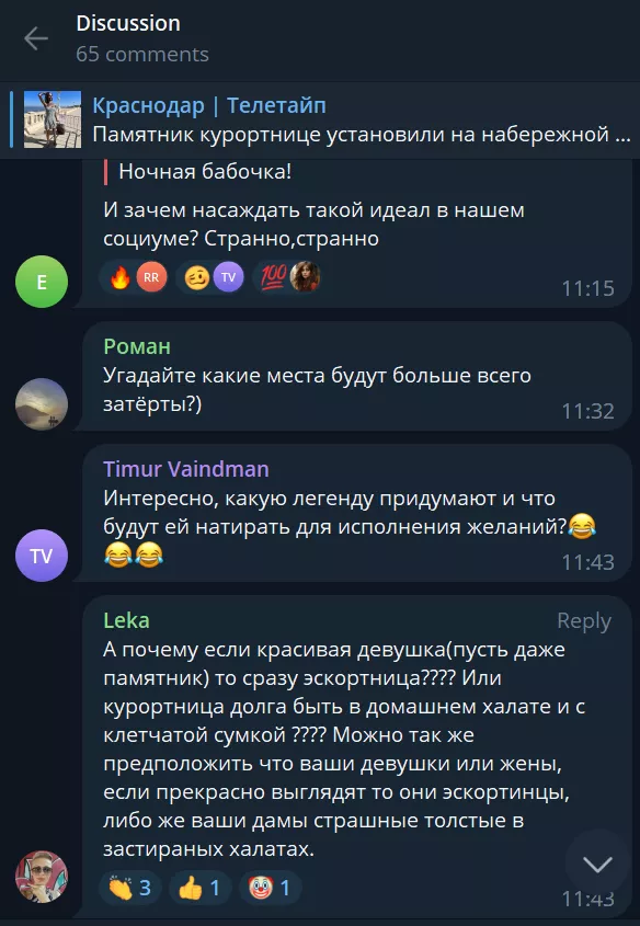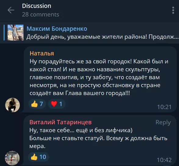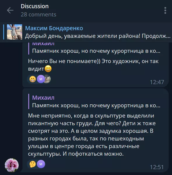 В комментариях под его постом в телеграм-канале большинство пользователей оценили новую скульптуру положительно, но и среди дружного одобрения раздались голоса недовольных эротичностью скульптуры.