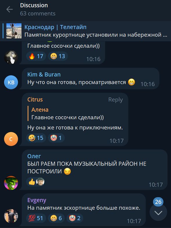 В комментариях под его постом в телеграм-канале большинство пользователей оценили новую скульптуру положительно, но и среди дружного одобрения раздались голоса недовольных эротичностью скульптуры.