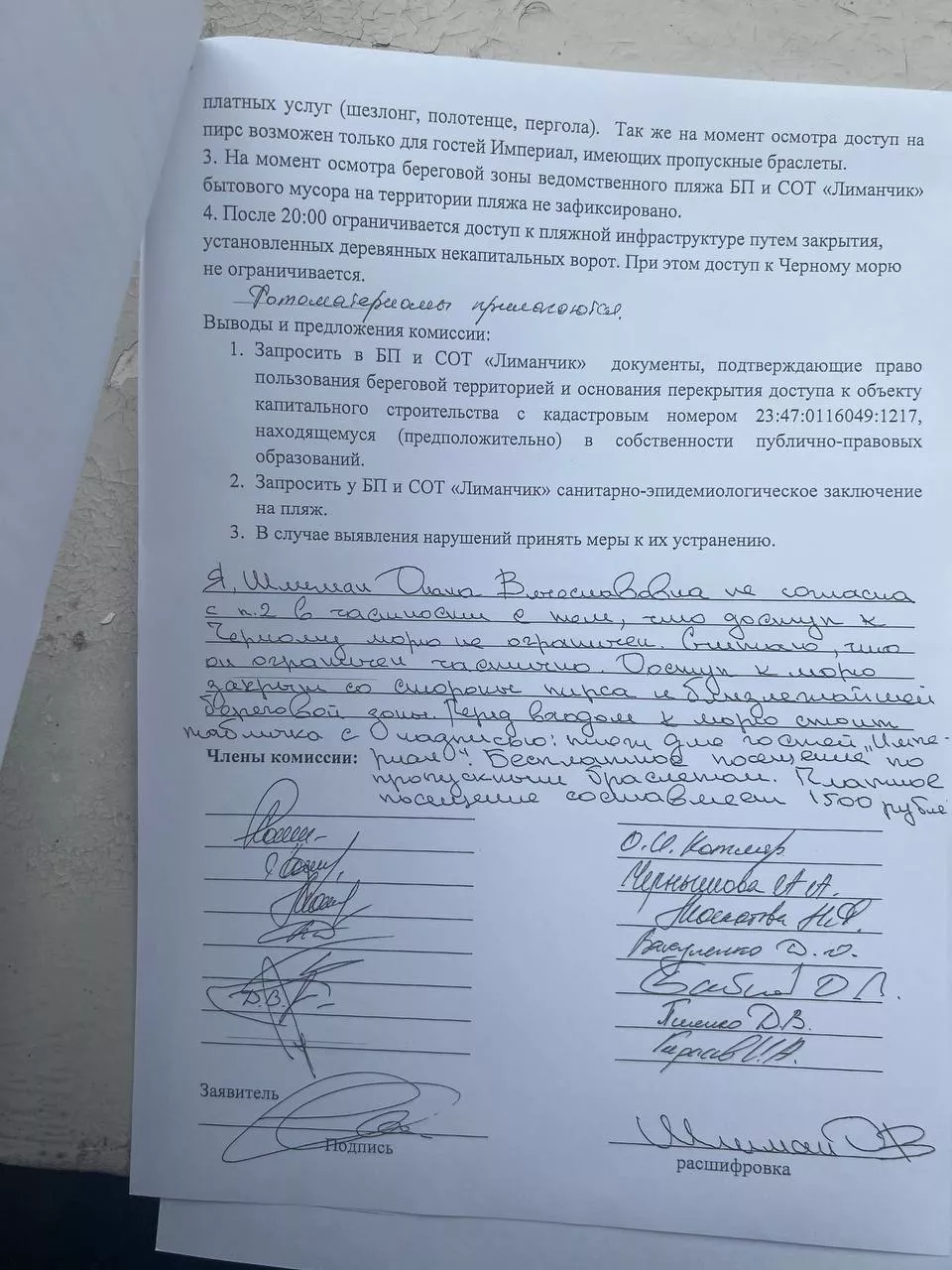 По итогу никаких нарушений комиссия не обнаружила, а в акте написали, что доступ к Черному морю не ограничивается. Сейчас Диана ждет письменного ответа от прокуратуры.
