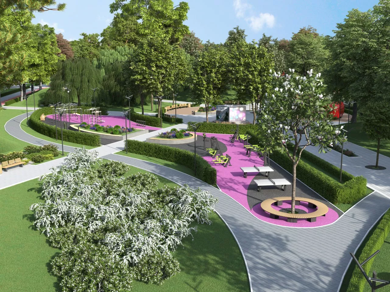 • детские площадки для детей разных возрастов;