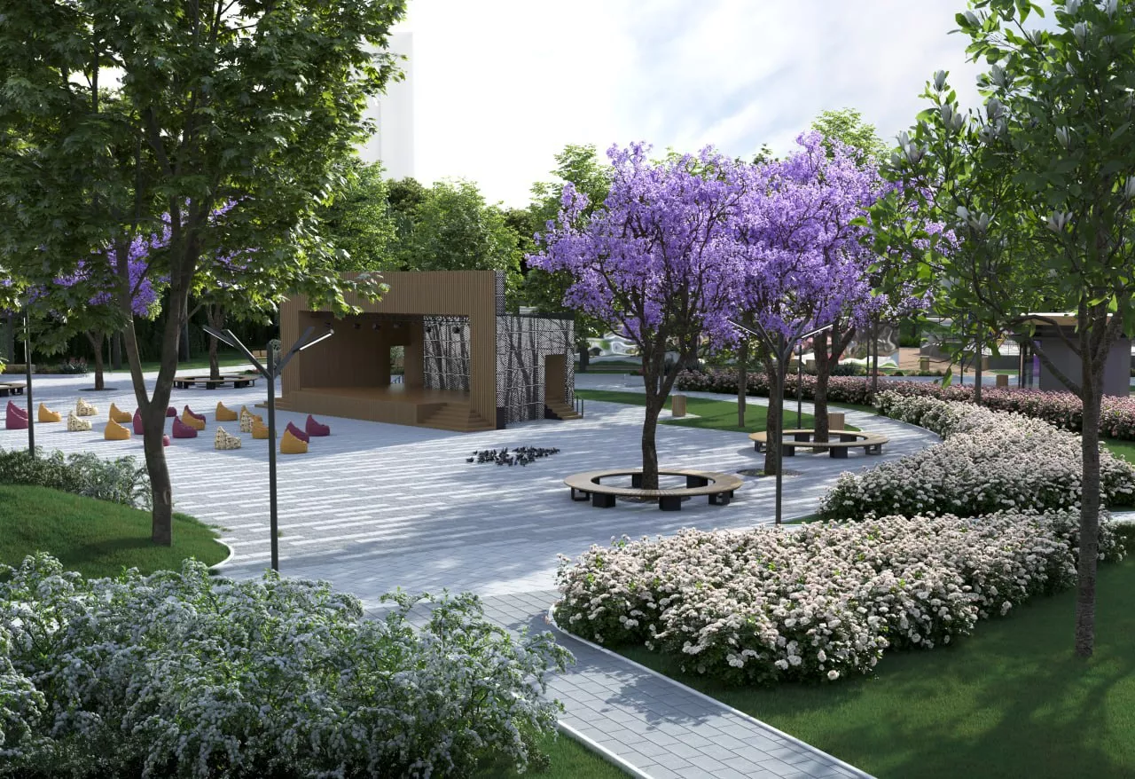• зону для массовых мероприятий с парковой сценой, танцплощадкой и кинотеатром под открытым небом;