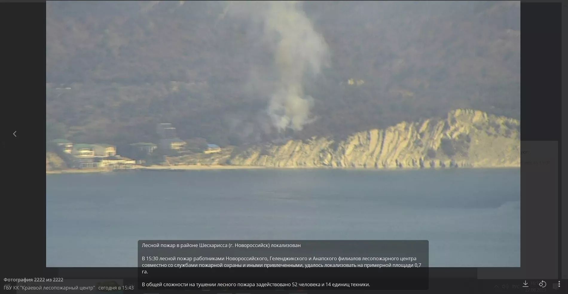 В соцсетях 27 августа появились кадры, на которых видно дым над лесом в районе Новороссийска.