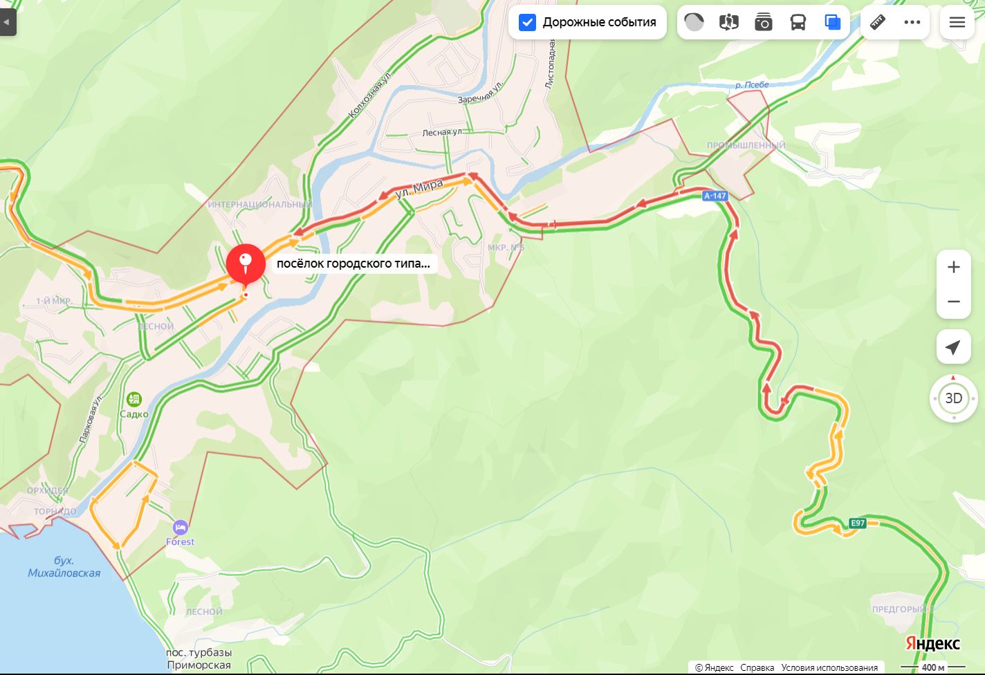 Рядом с поселком Ильским в сторону Краснодара также образовалась пробка. Расстояние 19,2 км от поселка Октябрьского до станицы Северской можно проехать только за час.