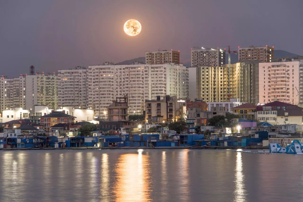 В последнюю летнюю ночь жители Краснодарского края увидели Голубую Луну. Показываем красивые снимки
