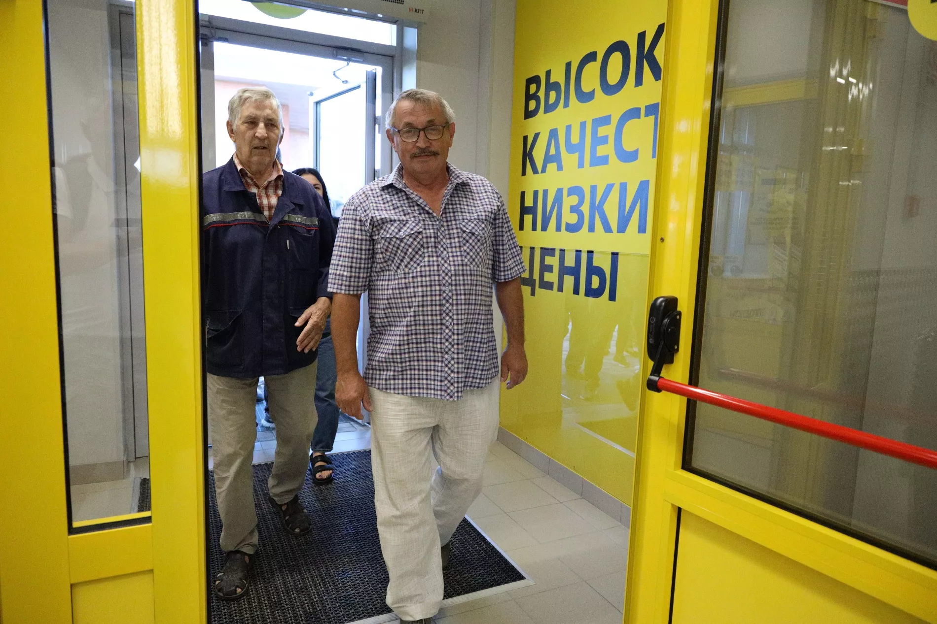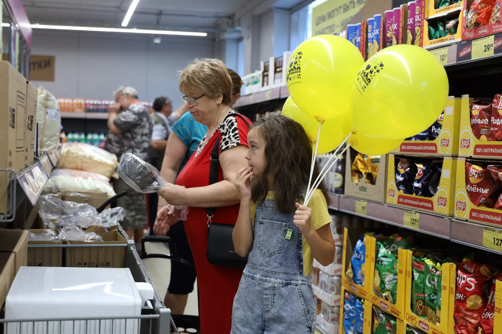 В день открытия первые покупатели, пожилая семейная пара, получили неожиданный, но приятный подарок — полноценный продуктовый набор.