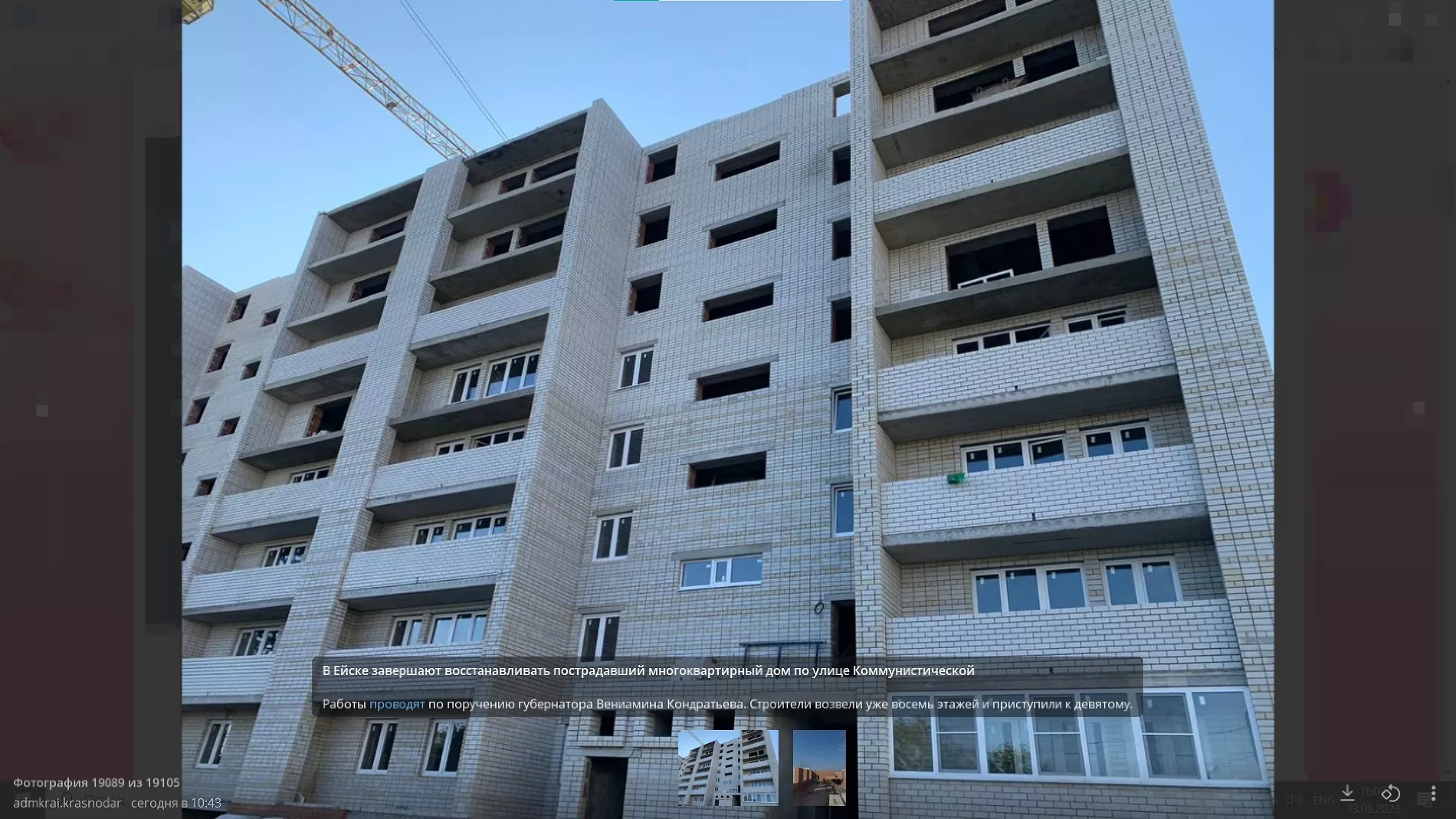 Администрация Краснодарского края рассказала, как в Ейске строят четыре подъезда дома, на который упал самолет