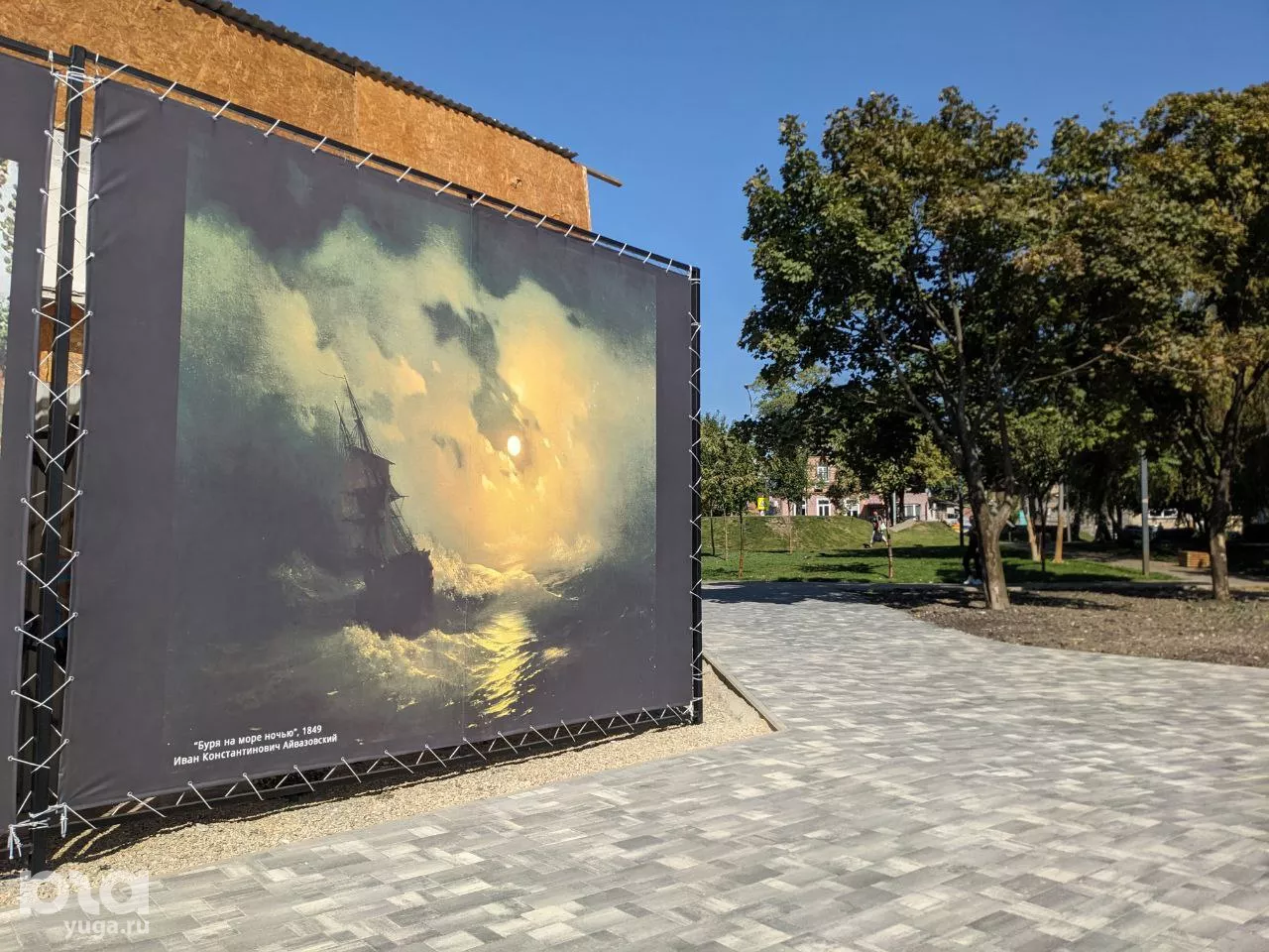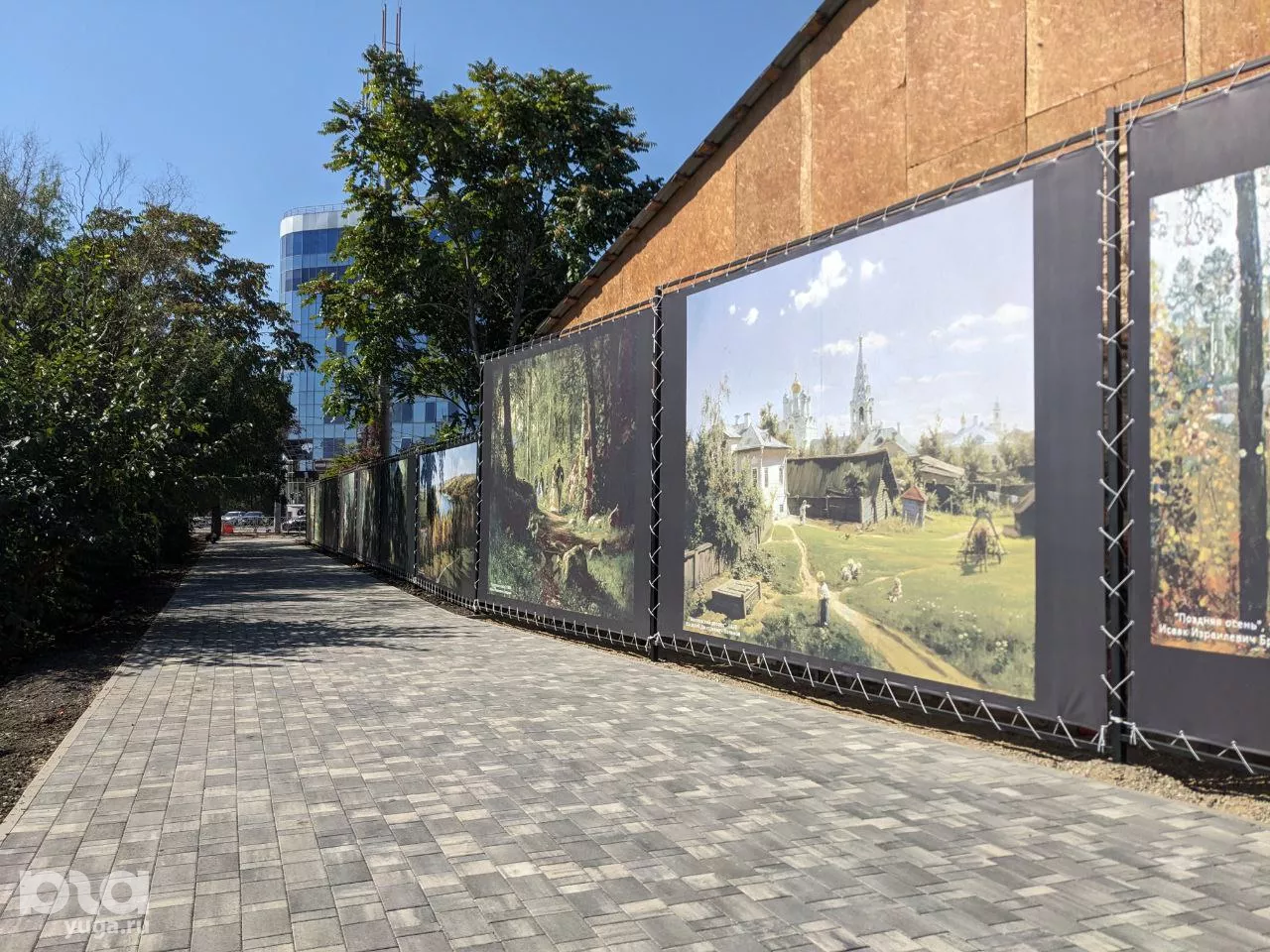 В Краснодаре расширили Дмитриевский сквер. Там повесили баннеры с русской живописью