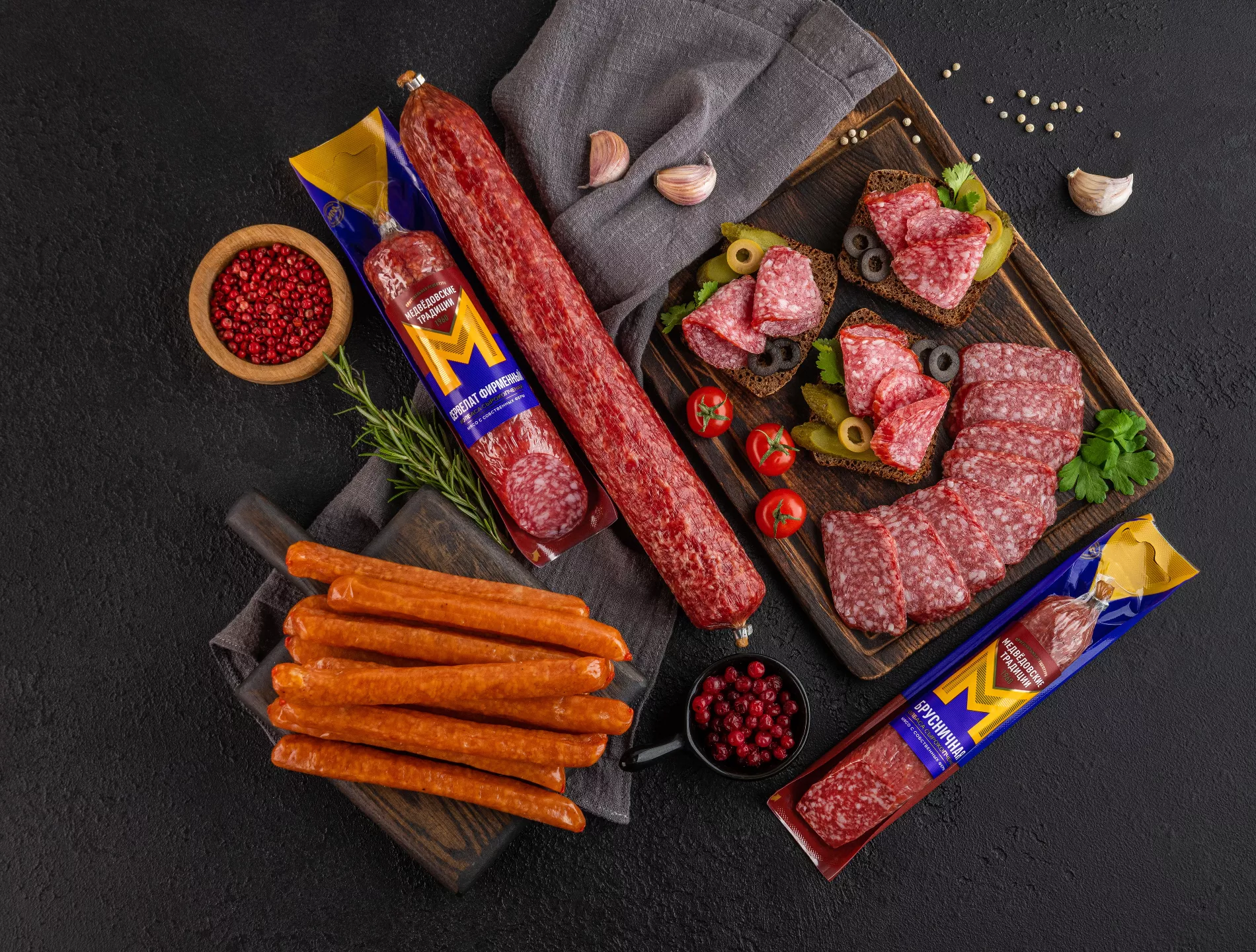 Все колбасы и деликатесы изготавливают из сырья с собственных ферм «Агрокомплекса» и оценивают по международной сертифицированной системе менеджмента безопасности пищевой продукции.
