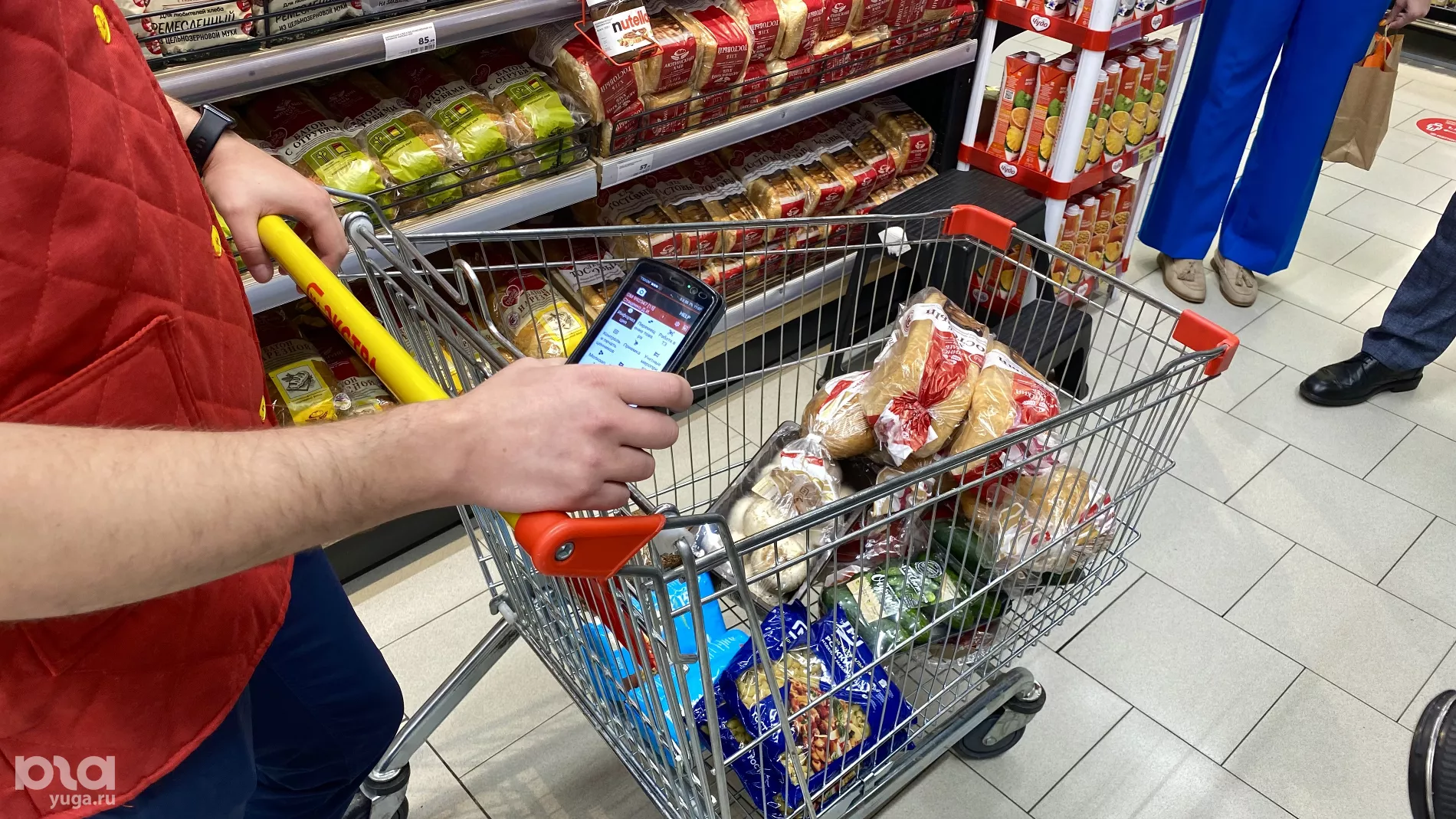 Передаваемые товары проходят двойной контроль качества — сотрудниками магазина и волонтерами банка еды. Продукты для набора собирают в магазине. Журналист Юга.ру побывала в гипермаркете и увидела, как это происходит.