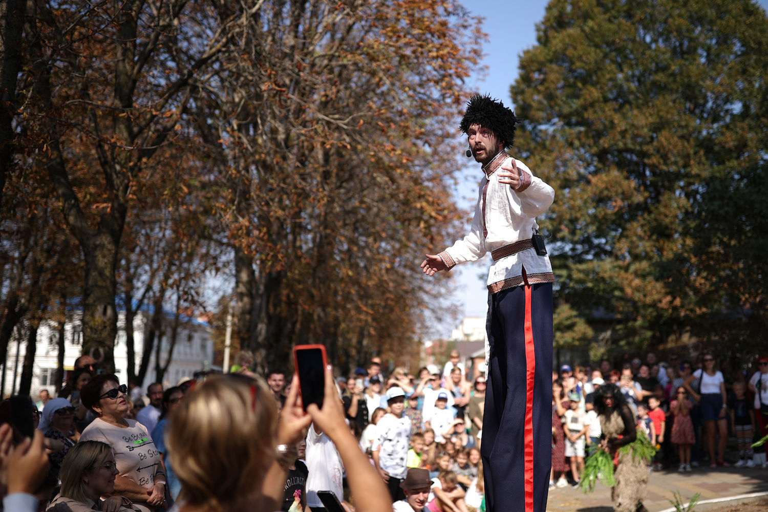 Проводником гостей в мир кубанской мифологии, представленной в уличных спектаклях по сказкам-быличкам, стал актер Никита Ефремов.