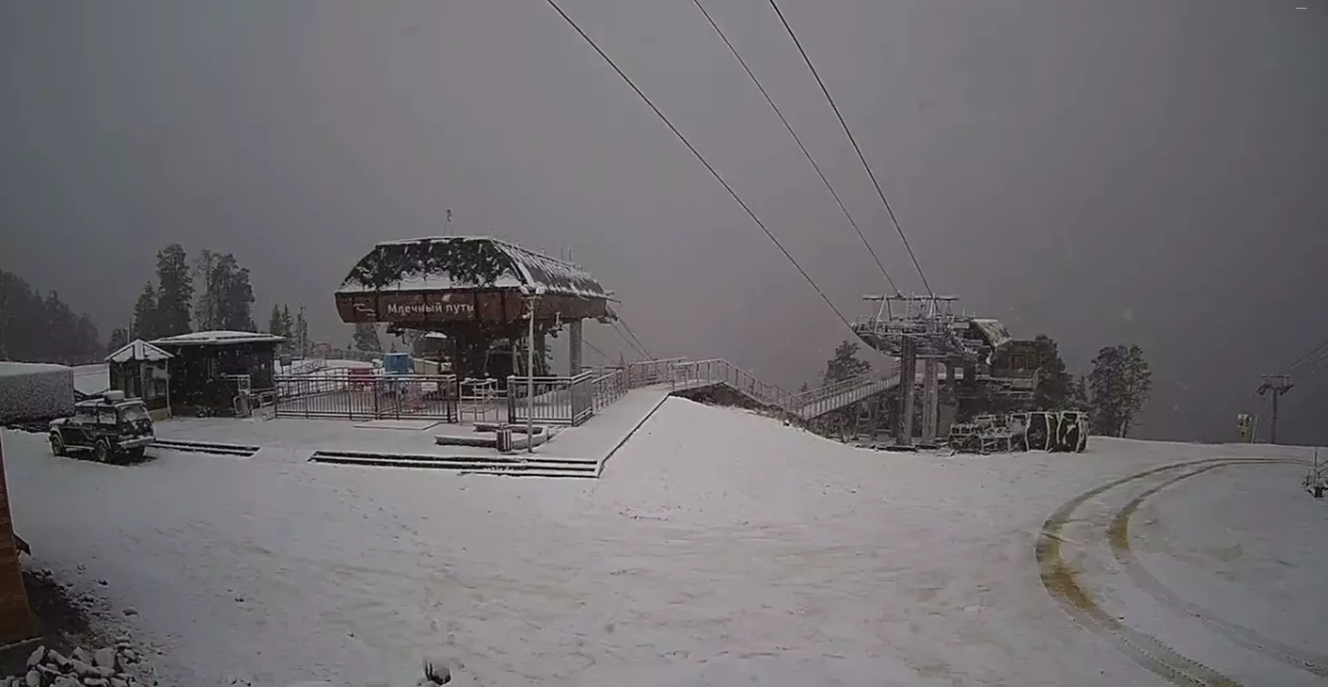 В горах Кубани и Кавказа пошел первый снег. Показываем обстановку на горнолыжных курортах