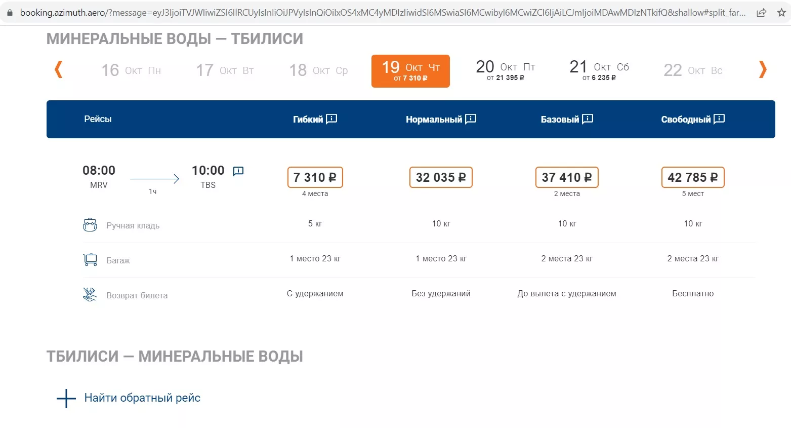 Из Минеральных Вод в Тбилиси с 19 октября можно улететь рейсом «Азимута». Авиакомпания открыла продажу билетов.