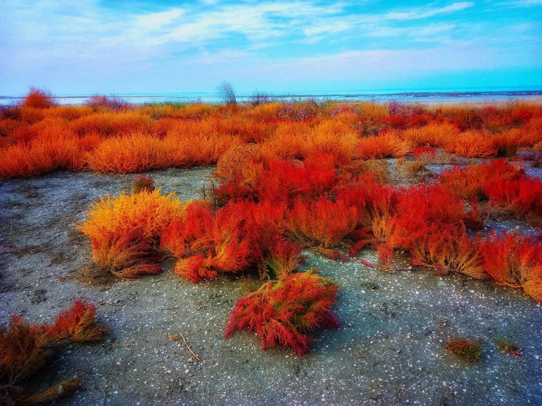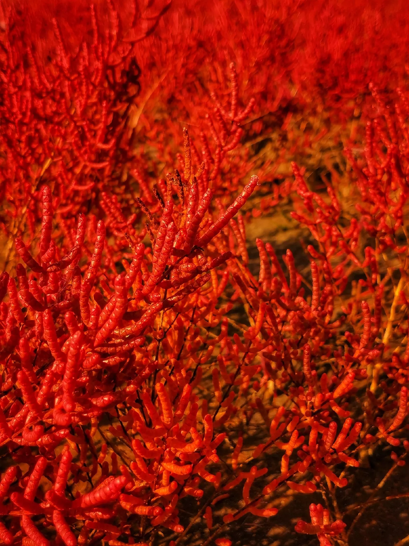Из-за ярко-красного окраса поля травянистого растения напоминают марсианские пейзажы.