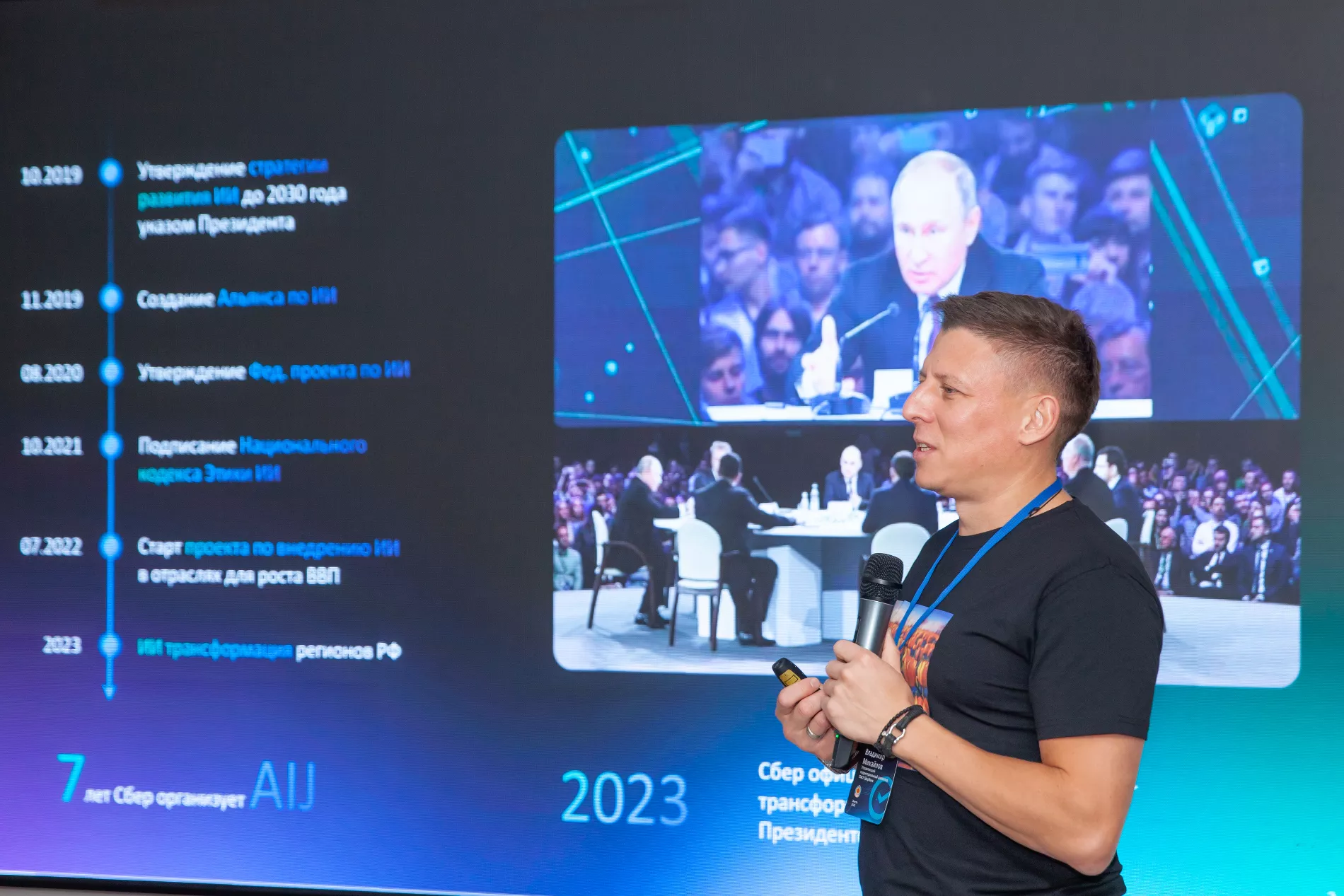 Представители Сбера рассказали гостям мероприятия о трендах внедрения искусственного интеллекта в России и в мире, опыте его применения в Сбере и успешных кейсах цифровой трансформации регионов.