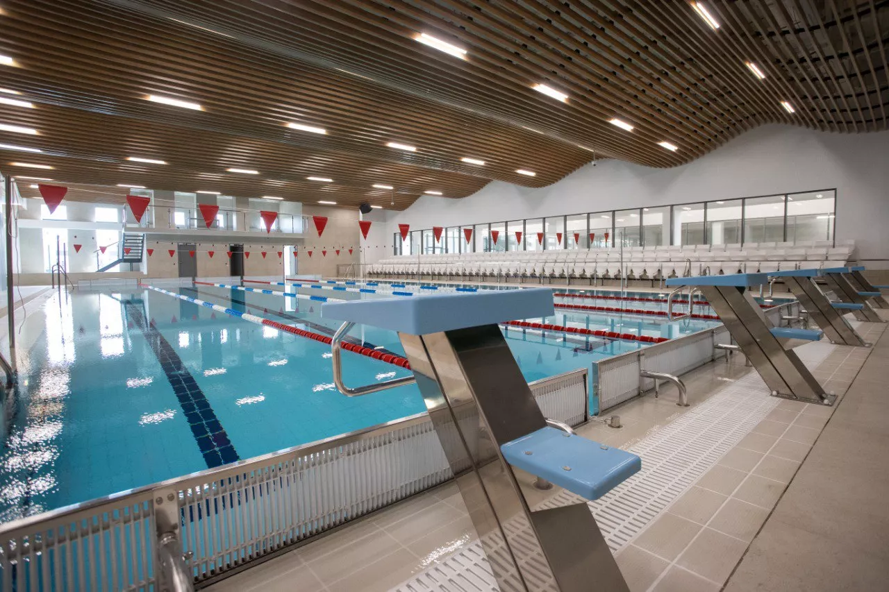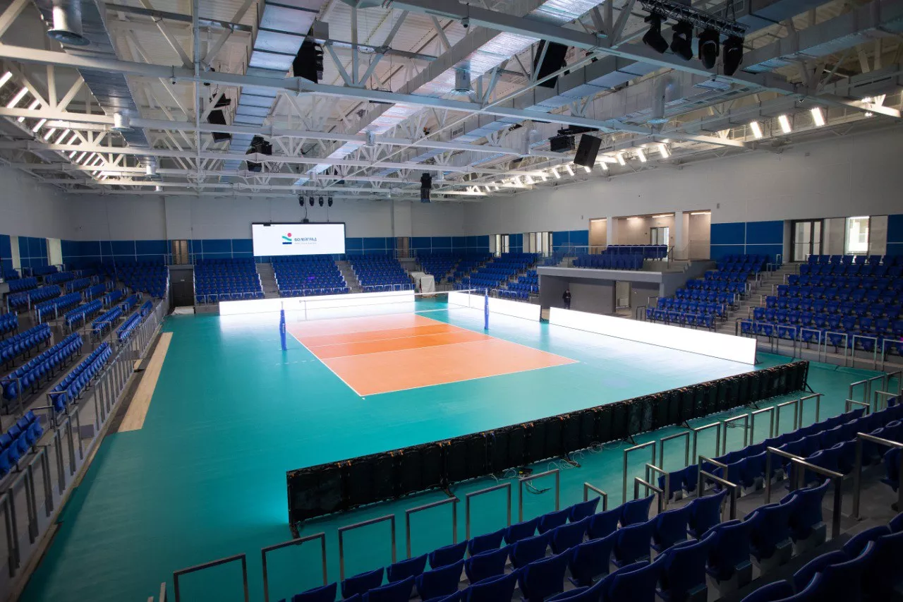 Общая площадь комплекса составляет более 7,7 тыс. кв. метров. Его оснастили профессиональной волейбольной ареной, установили трибуны на 1500 мест и сделали бассейн с пятью дорожками.